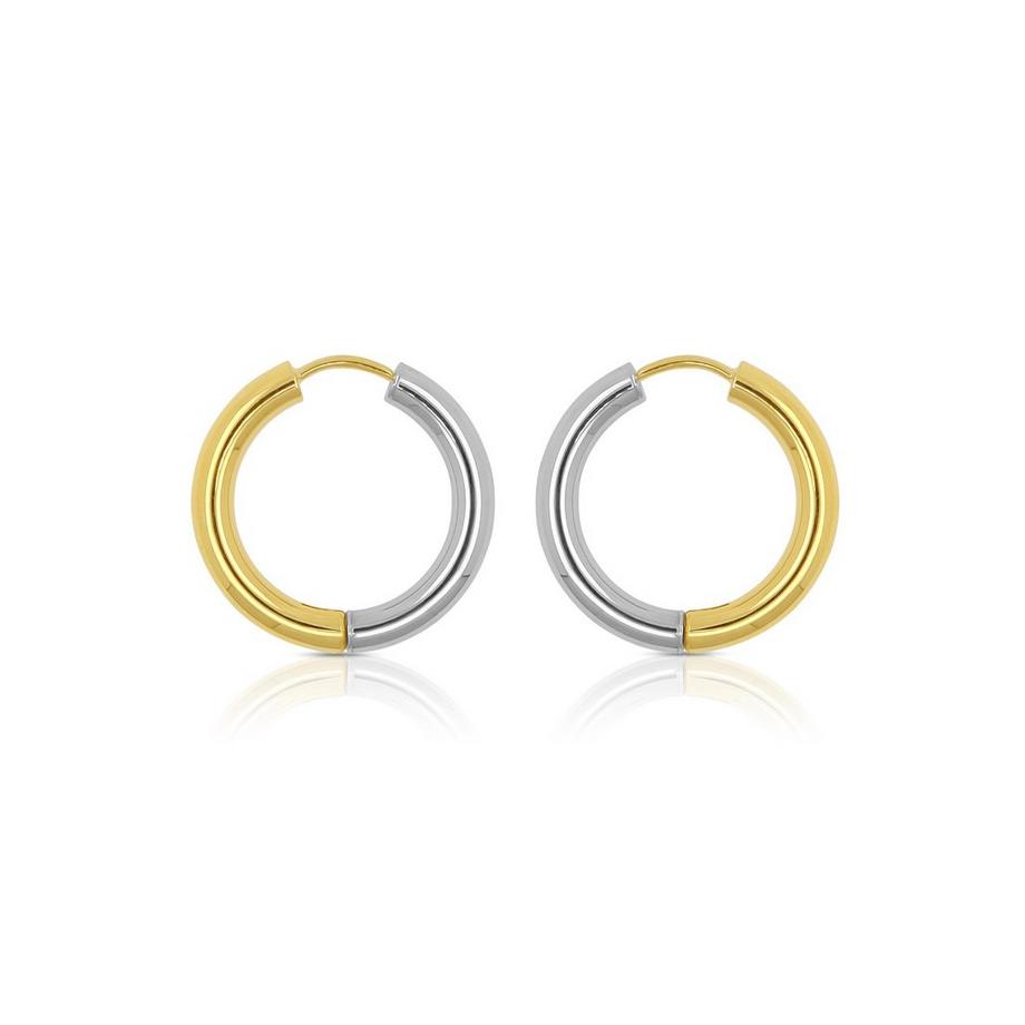 MUAU SchmuckScharnier-Creolen Bicolor Gelb-/Weissgold 750, 13mm