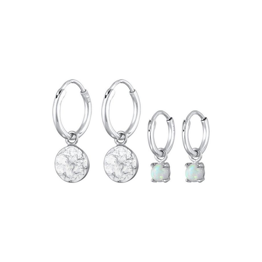 ElliOhrringe Creolen Plättchen Opal Edelstein 2Er Set 925 Silber