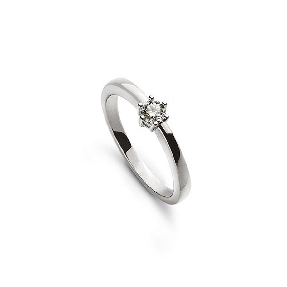 MUAU SchmuckSolitär Ring 6-Griff-Fassung Weissgold 750, Brillant 0.10ct.