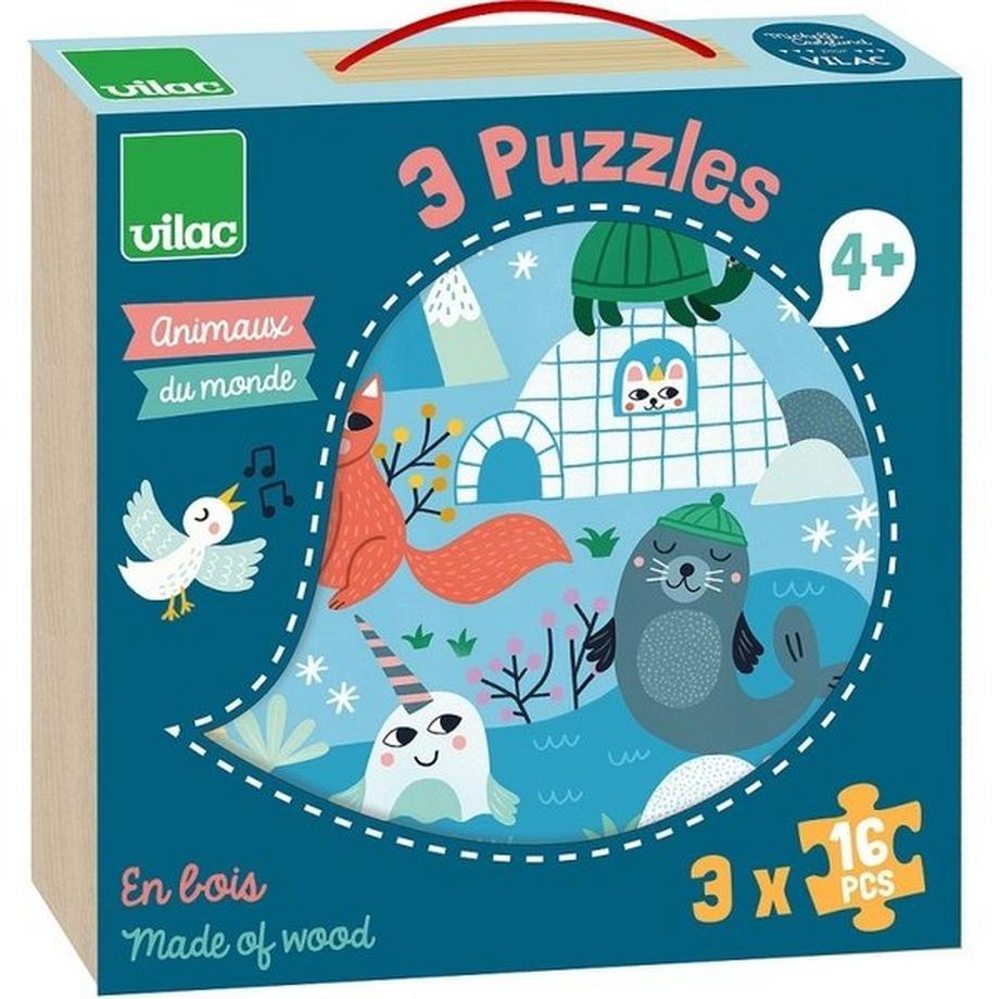 VilacPuzzle im Koffer Tiere der Welt 3x16