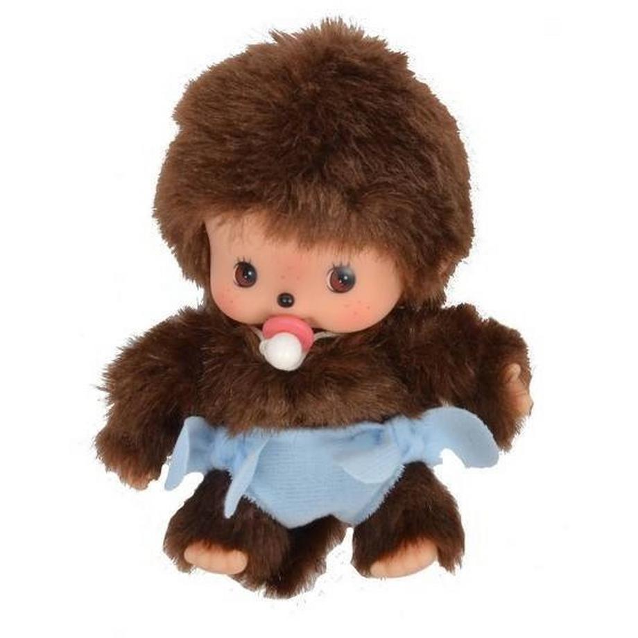 MonchhichiSekiguchi 235370 Original Bebichhichi Junge, aus braunem Plüsch, mit blauer Windel, ca. 15 cm