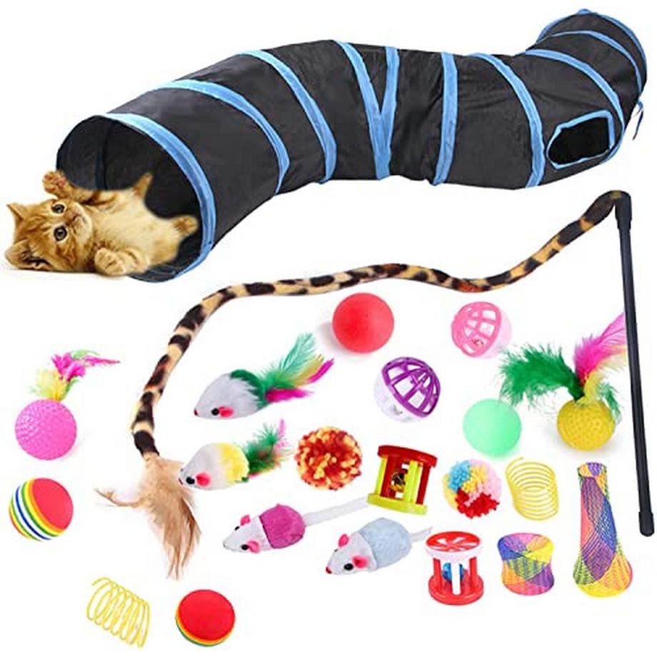 AlopiniKatzenspielzeugset mit Tunnel, 22 Teile, Kätzchenspielzeug