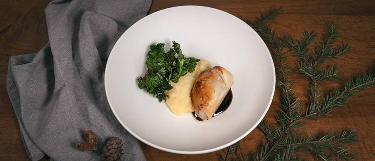 Hauptspeise: Mushroom-Wellington, cremige Polenta, Grünkohl