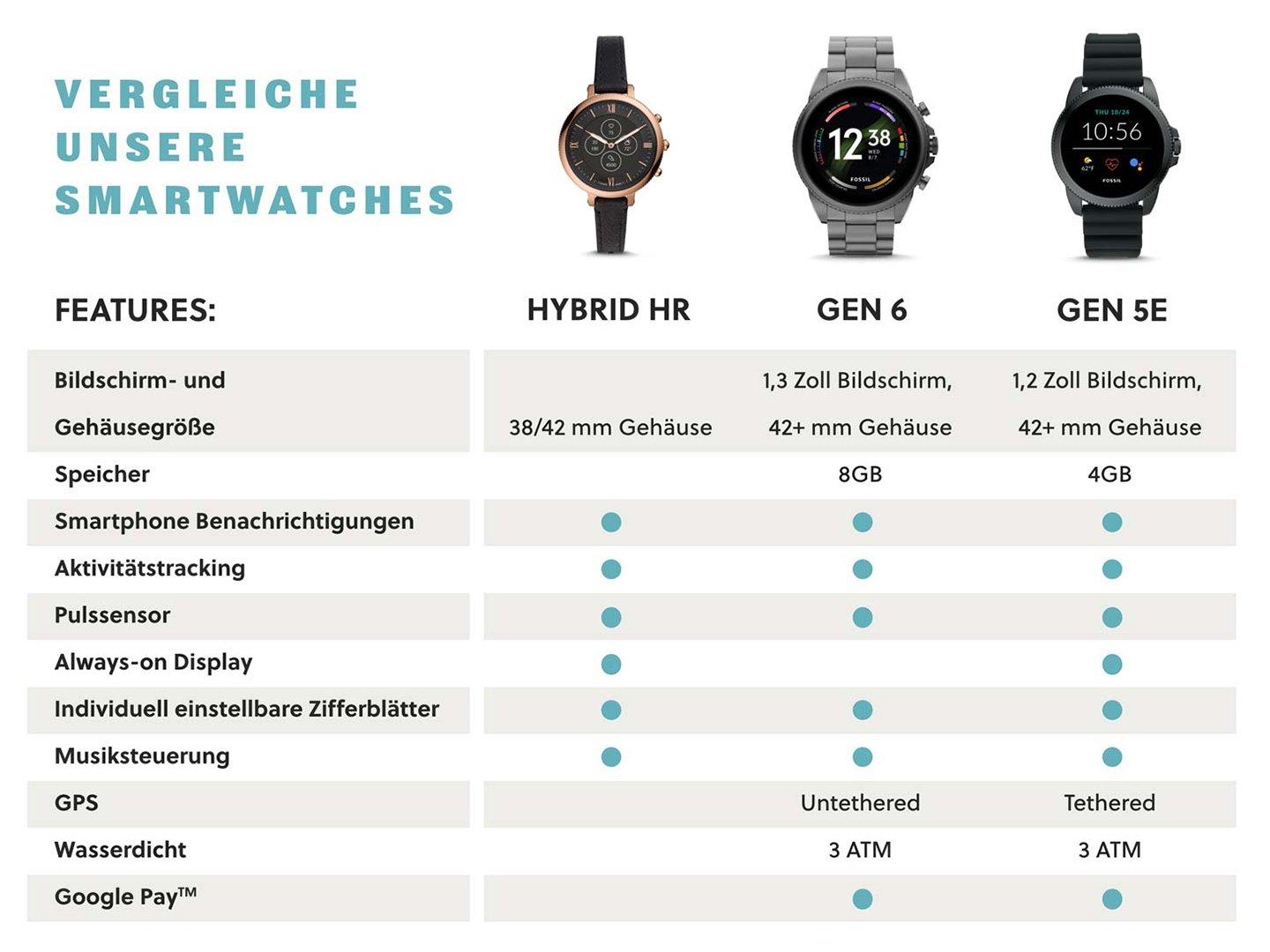 Fossil's schnellste und fortschrittlichste Smartwatch aller Zeiten. Branchenführende Performance Mit der Snapdragon Wear 4100+ Plattform – 30 % mehr Leistung<em> mit schnellerem Laden von Apps, schnellerem Prozessor und geringerem Stromverbrauch. </em> im Vergleich zur Gen 5 Mit der Gen 6 und Google machst Du das Beste aus Deiner Zeit. Verwalte tägliche Aufgaben, plane Deinen Tag oder erhalte Antworten.