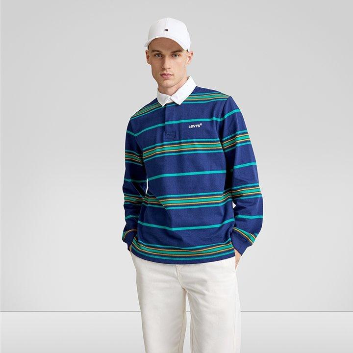 Darf’s ein bisschen Oversize sein? Wir finden: Ja. Tragen Sie zum langärmeligen Polo mit weissem Kragen eine helle, unifarbene Hose. Dazu passt ein weisses Cap, das Ihre lockere Art unterstreicht.