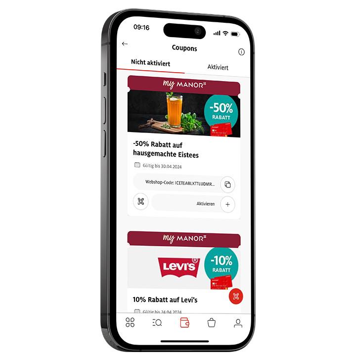 Exklusive Rabatte digital speichern, aktivieren und zu einem beliebigen Zeitpunkt auf manor.ch einlösen.