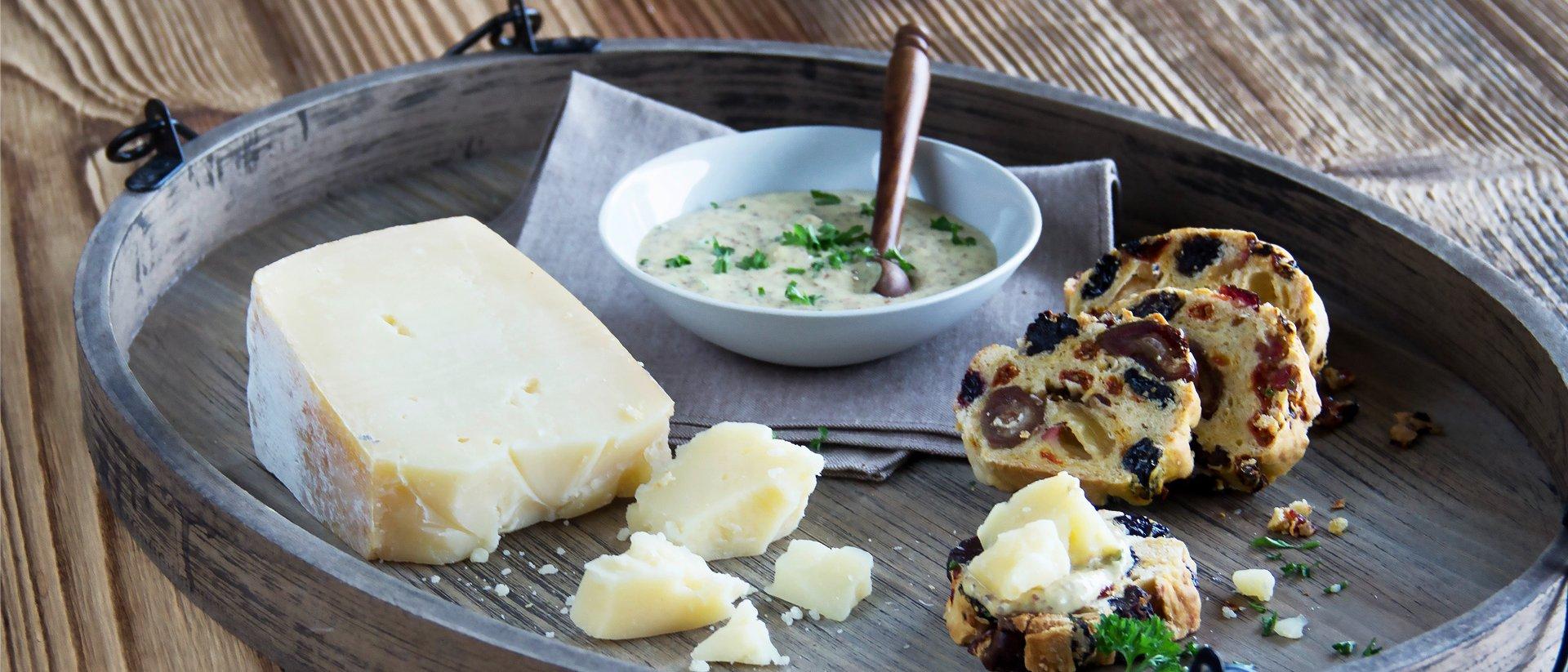 Rezenter Alpkäse auf Früchtebrot