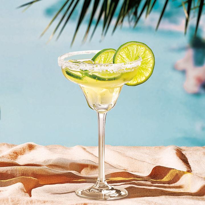 Glasrand mit Limettenscheibe anfeuchten und in Salz tauchen