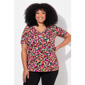 Ulla PopkenT-shirt long Imprimé patchwork Col V Manches courtes Coupe évasée