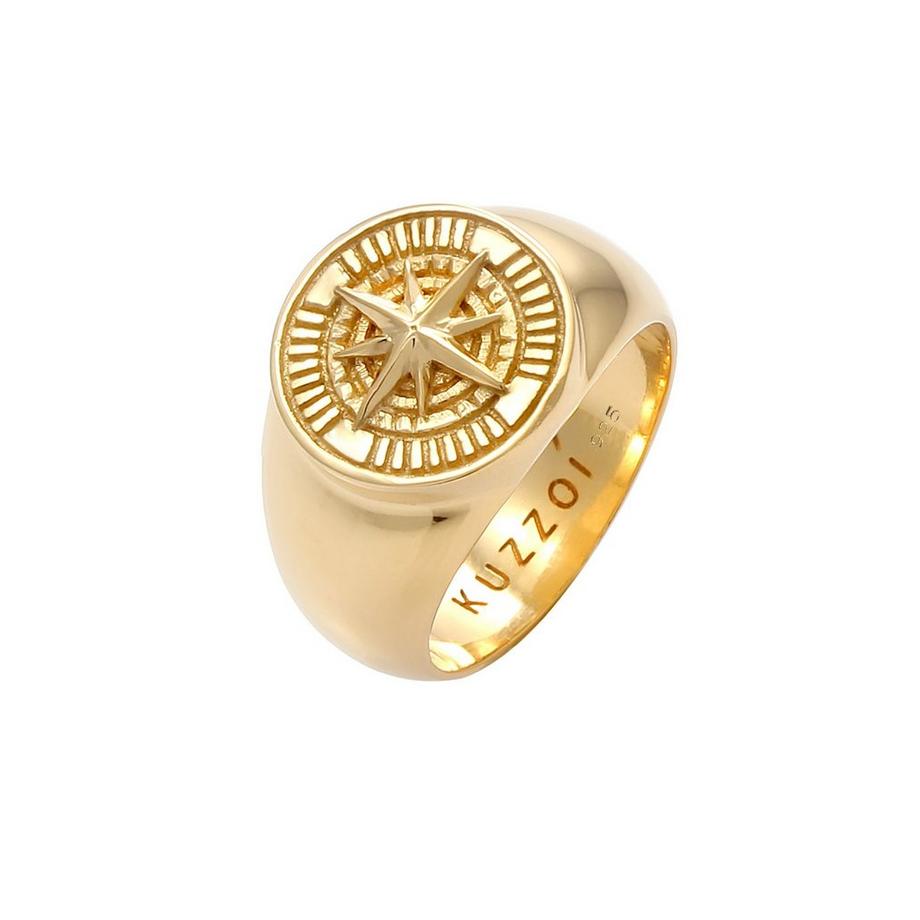 KuzzoiBague Herren Siegelring Kompass Oxidiert 925 Silber