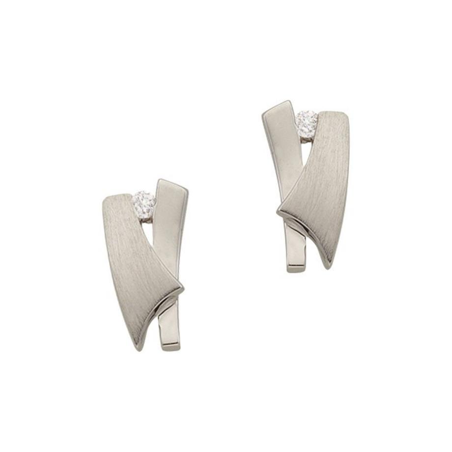 MUAU SchmuckClous d'oreilles or blanc 750 diamant 0,03ct. 10x5mm