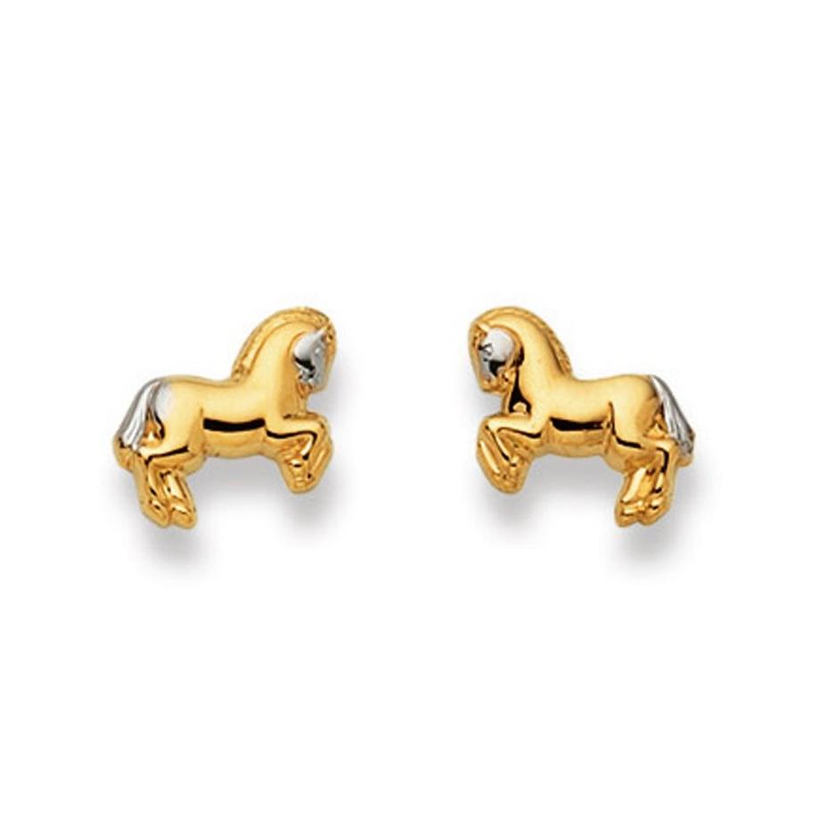 MUAU SchmuckClous d'oreilles cheval or blanc 750, 7mm
