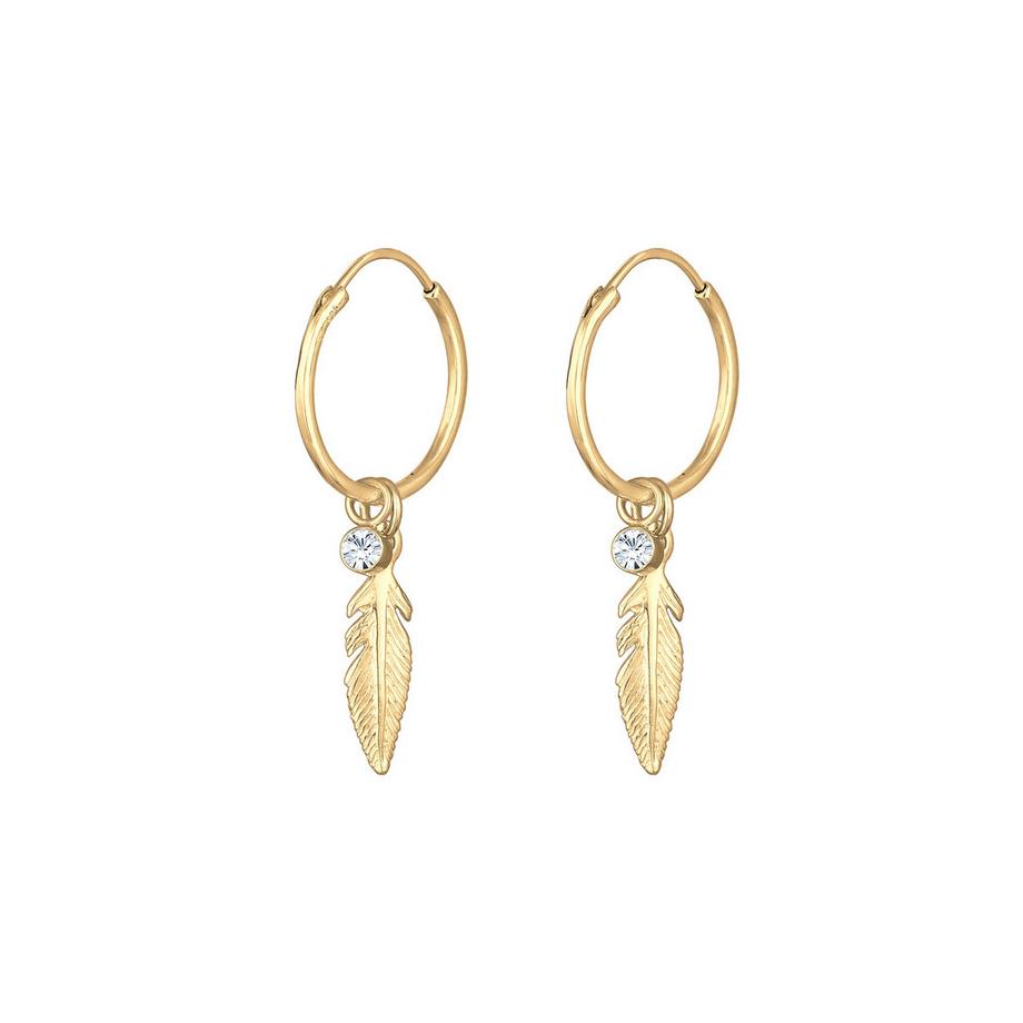 ElliBoucles d'Oreilles Femmes Créoles Pendentif Plume Festival Boho Avec Cristal