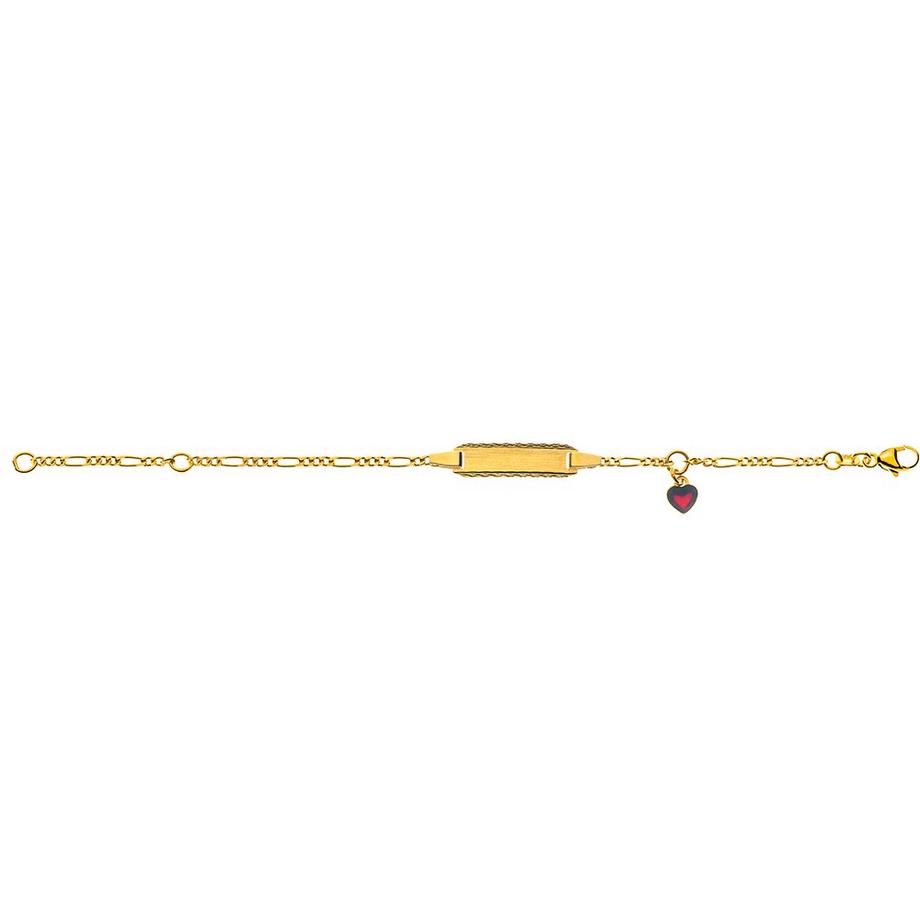 MUAU SchmuckBracelet Bébé figaro or jaune 750, 14cm plaque à graver 2cm Pendentif coeur en émail