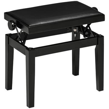 NorthioTabouret De Piano, Banc De Piano Réglable En Hauteur Avec Coussin En Cuir, Banc De Piano, Simili Cuir, Bois D'Hévéa, Noir, 63 X 33 X 45-56 Cm