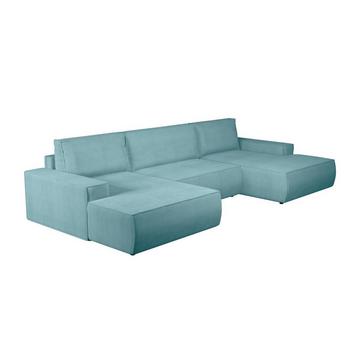 Vente-uniqueGrand canapé d'angle panoramique convertible en velours côtelé bleu turquoise AMELIA