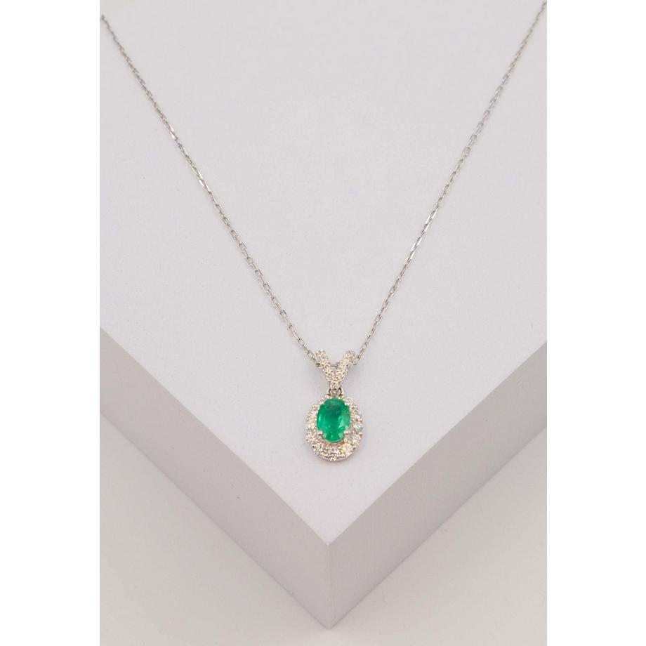 MUAU SchmuckPendentif or blanc 750 émeraude 0,76ct. diamants 0,42ct. 13x9mm