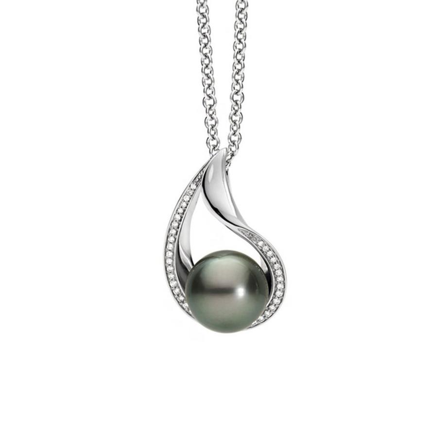 MUAU SchmuckPendentif perle de Tahiti or blanc 750 diamant 0,123ct.