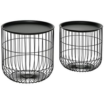 NorthioLot De 2 Tables Basses, Tables D'Appoint Au Design Scandi, Table Basse Avec Espace De Rangement, Acier, Noir