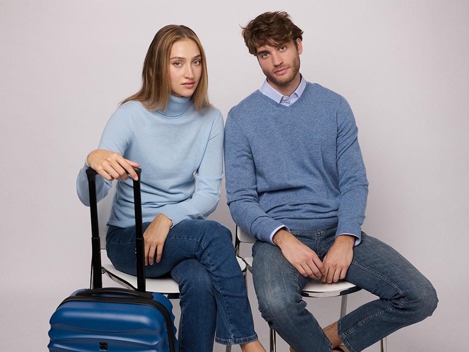 Des produits de beauté en format voyage et des valises de toutes les tailles.