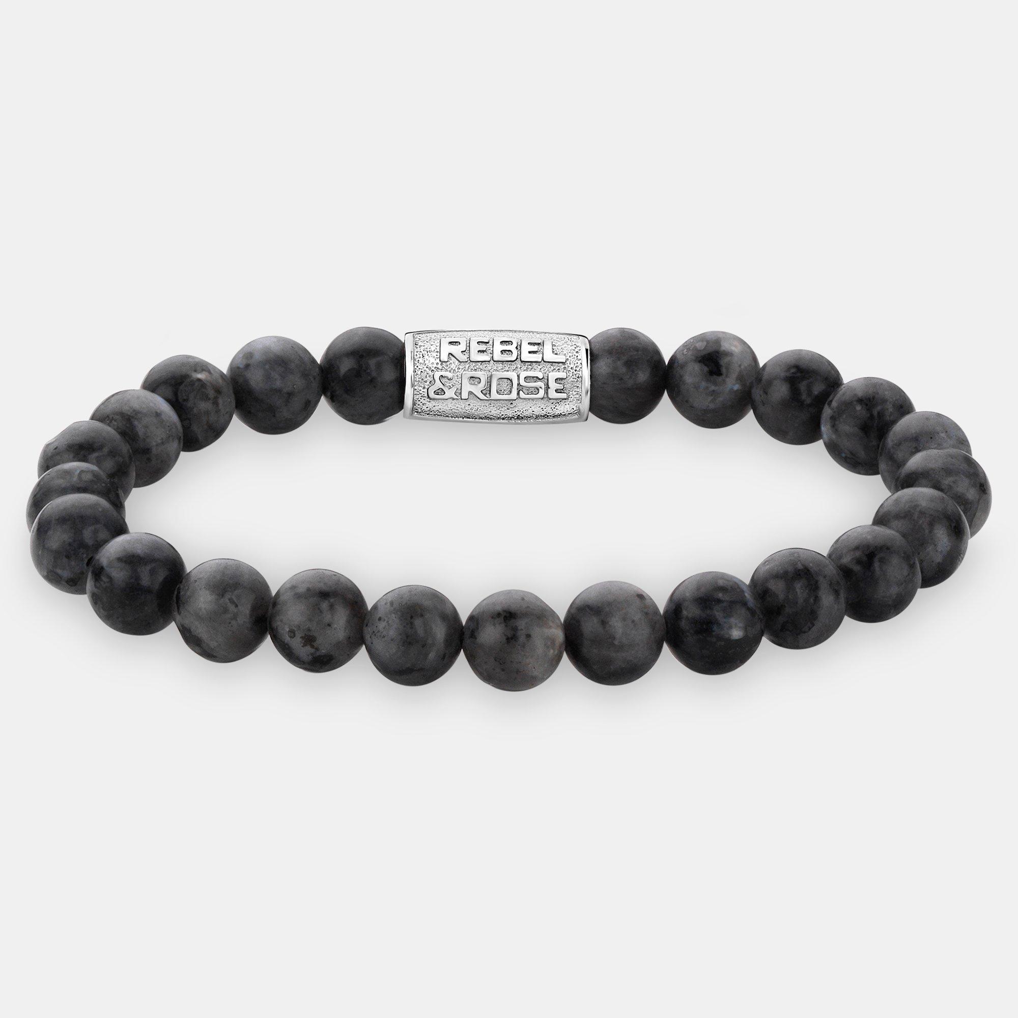 Le bracelet est composé de perles et d'un fermoir en argent mat, entièrement dans l'esprit de la marque Rebel & Rose. Un accessoire élégant pour homme en pierre précieuse.