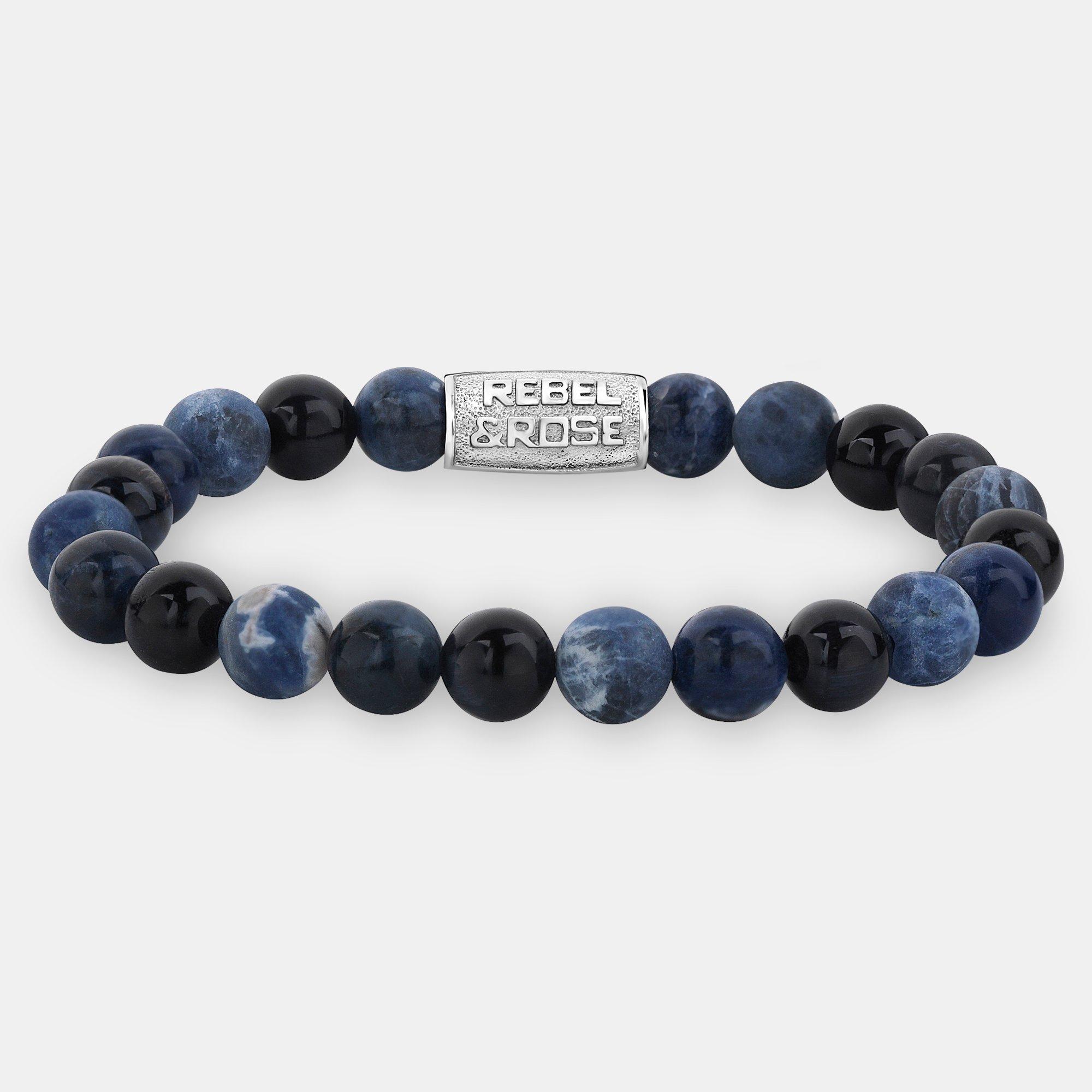 Le bracelet est composé de perles et d'un fermoir en argent mat, entièrement dans l'esprit de la marque Rebel & Rose. Un accessoire élégant pour homme en pierre précieuse.