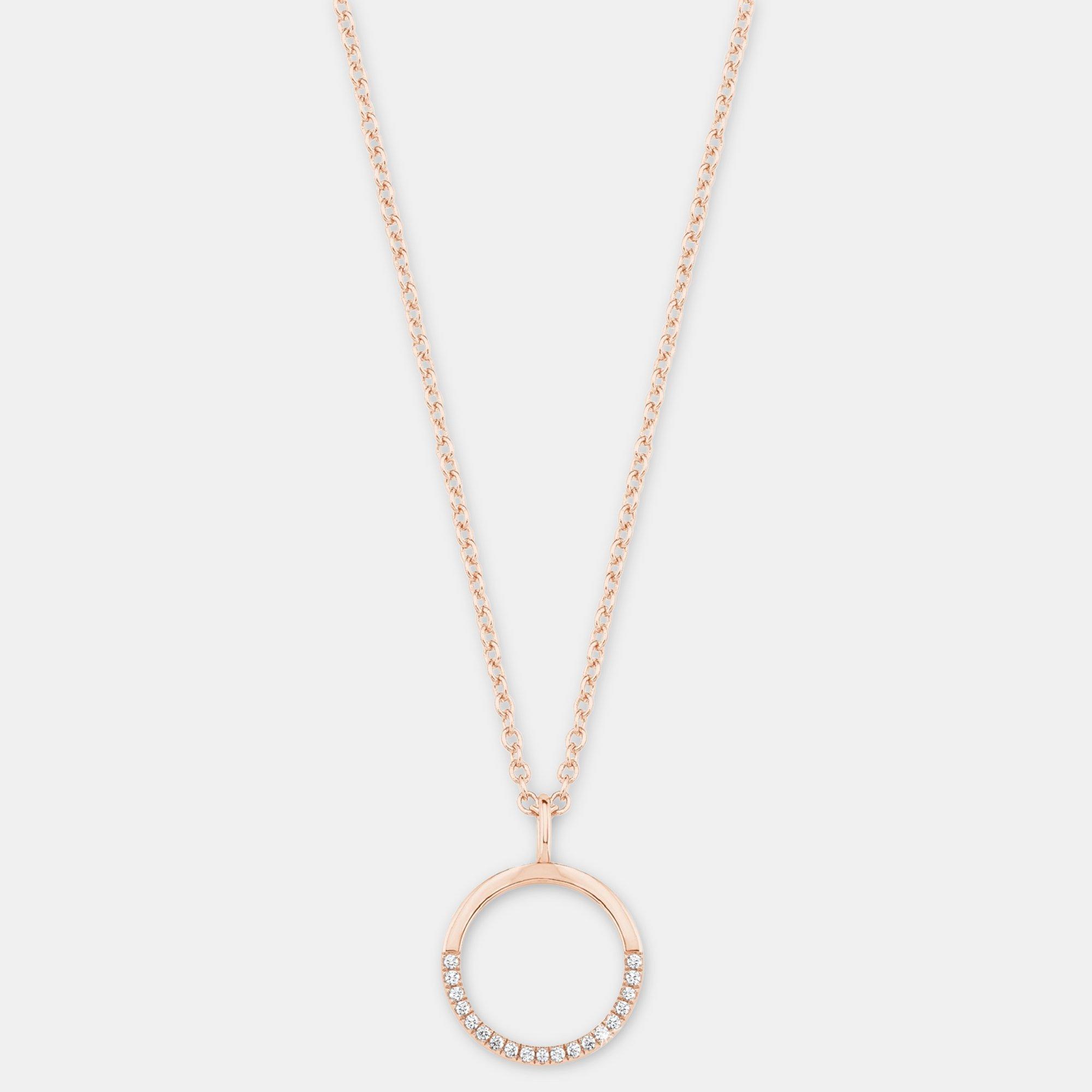 Sur une chaîne maille forçat brillante et ronde, le pendentif cercle géométrique est parfaitement mis en valeur. Sur le pendentif rond, un total de 18 zircons blancs (synth.) font la course à celui qui brillera le plus. La chaîne et le pendentif magnifiquement conçu sont tous deux en argent sterling 925 de haute qualité, recouvert d'un placage d'or rose chaud.