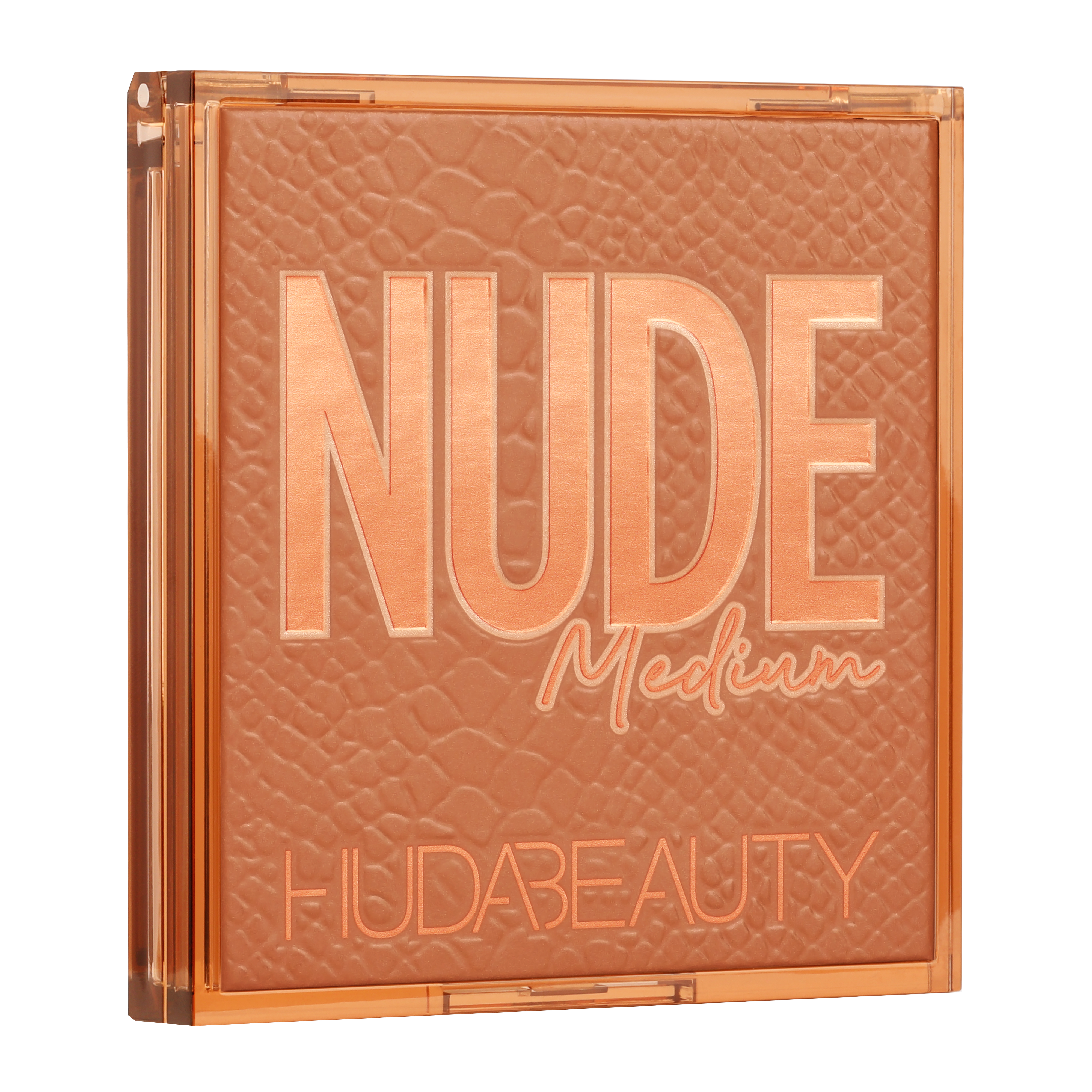 NUDE Medium : la palette préférée d’Huda. Polyvalente, elle offre un riche mélange de tons épicés alliant des tons châtaigne et des bruns intenses. Elle comporte des reflets métalliques dans des tons chauds de jaune et d’or rose, de cuivre rustique, de rose poudré, de corail et des nuances uniques de terre cuite.