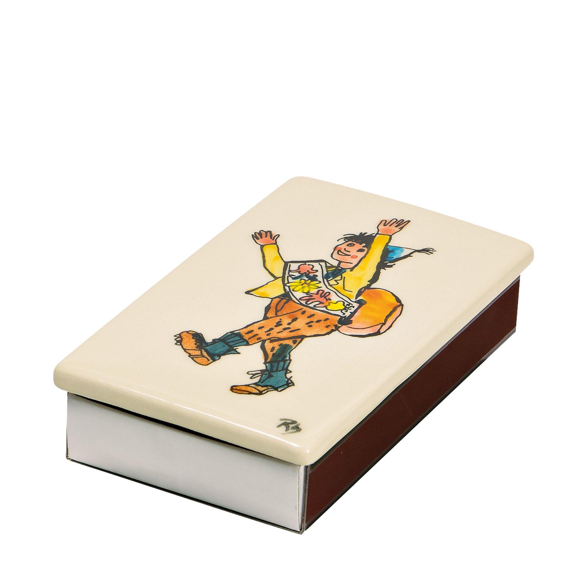Boîte d'allumettes peinte à la main par Kuhn Rikon avec le célèbre livre d'images 'Schellenursli' - un vrai classique qui vous fera grand plaisir.