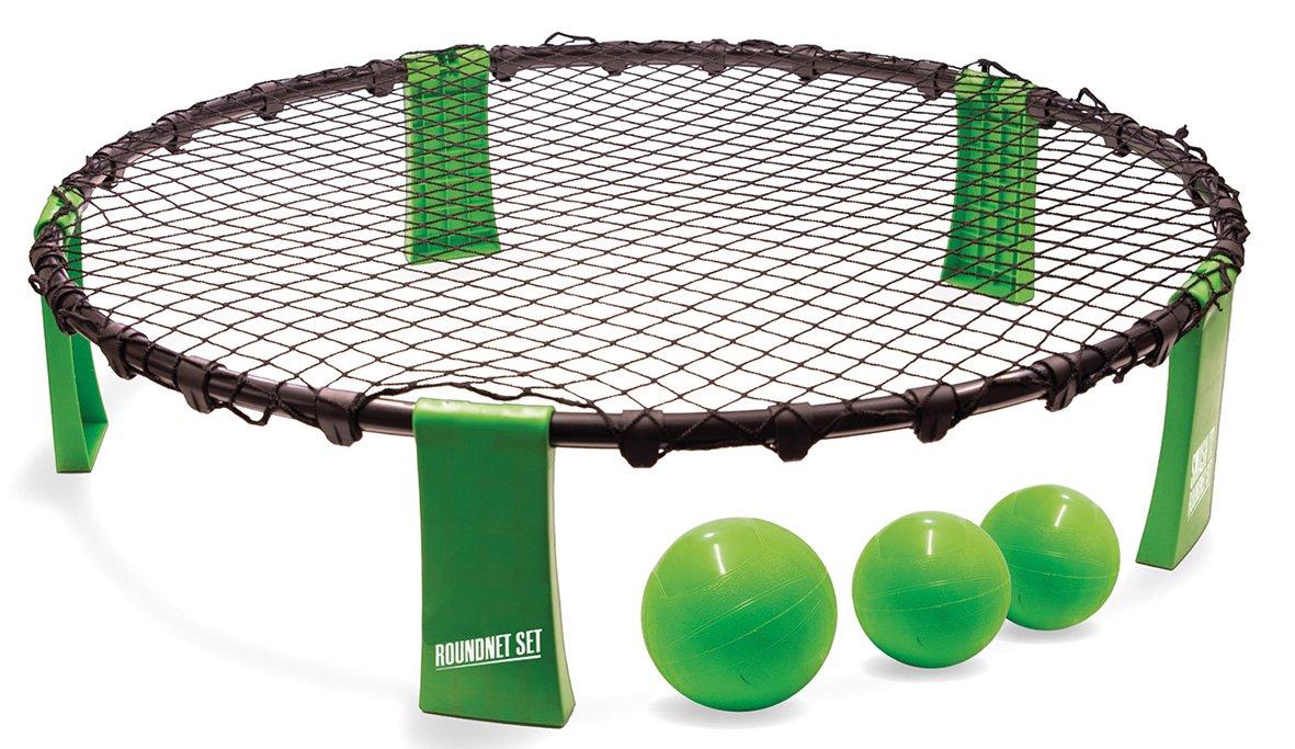 Roundnet est le nom du nouveau sport ludique ultime pour petits et grands. Deux équipes de 2 joueurs chacune s'affrontent. Tous sont répartis uniformément sur le réseau. Pour servir, la balle est frappée avec la main plate sur le filet, de sorte qu'elle vole dans le côté de l'adversaire. L'équipe adverse peut maintenant se passer la balle jusqu'à trois fois avant qu'elle ne doive être frappée de nouveau dans le filet. Le but est d'empêcher l'équipe adverse de frapper la balle. Après le service, chaque joueur peut se déplacer librement autour du filet. C'est ce qui rend le jeu si rapide. Avec des passes courtes et longues, des attaques feintes et d'autres tours, vous essayez d'attirer votre adversaire hors de la réserve. Si l'adversaire n'arrive pas à rejouer le ballon et que le ballon tombe au sol, l'équipe reçoit 1 point. Dès qu'un joueur est obstrué, il obtient également 1 point. Le premier joueur qui atteint 21 points et mène de 2 points gagne le match. Le set contient tout ce qu'il faut pour le début immédiat d'un match Roundnet : un filet Roundnet complet (Ø 90 cm, env. 20 cm de haut), 1 balle d'entraînement (Ø 11 cm), 2 balles de compétition (Ø 9 cm), une pompe à balle avec aiguille ainsi qu'une poche filet pour ranger et transporter. Veuillez noter que l'aiguille de la pompe se trouve dans la poignée. Le nouveau sport ludique ultime pour petits et grands. Roundnet peut être joué entre amis ou en famille sur la plage, dans le parc ou à l'intérieur. Le jeu au rythme effréné inspire tout le monde et vous pouvez rapidement trouver d'autres joueurs intéressés. Veuillez gonfler les ballons avec un maximum de 0,5 bar.