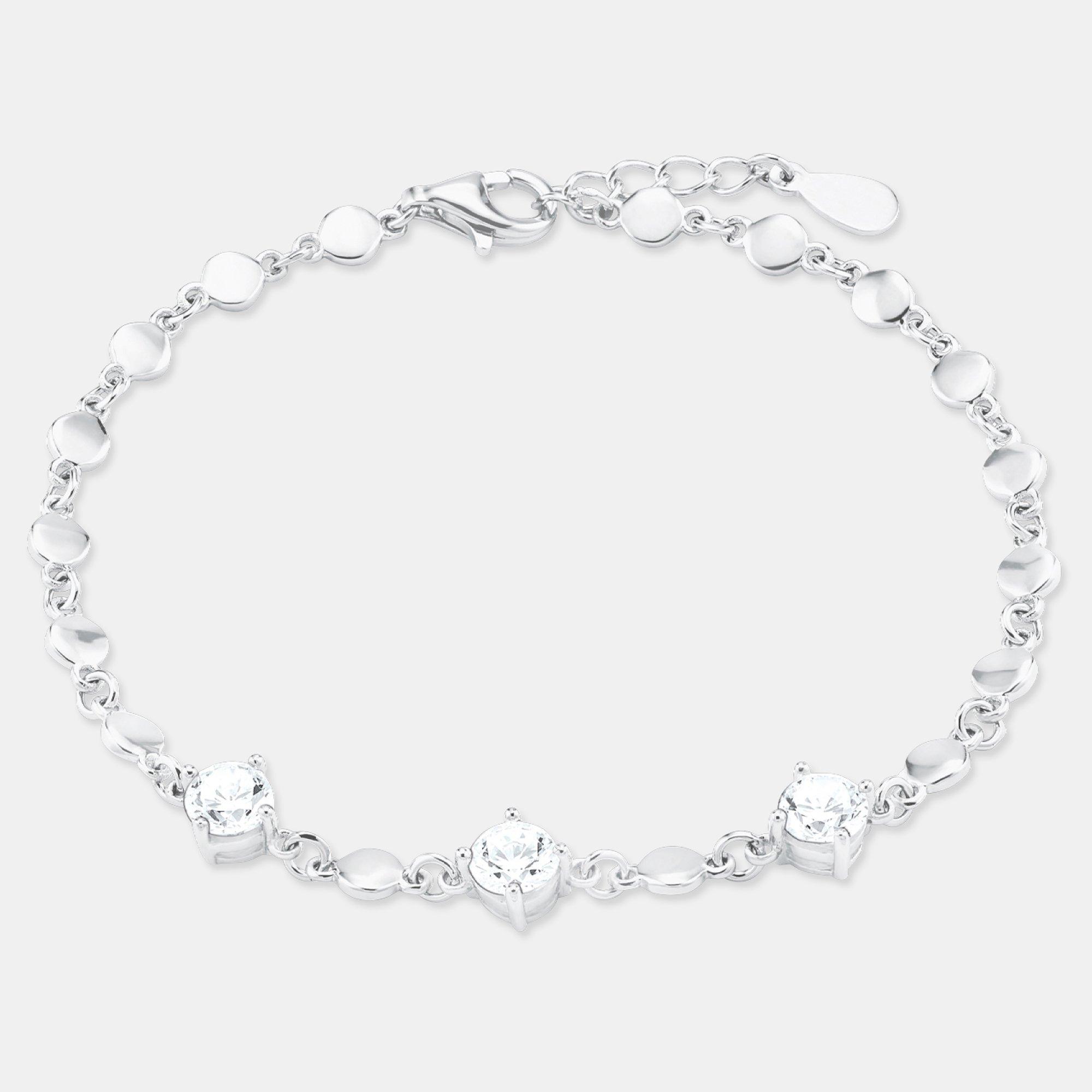 Bracelet femme scintillant dans une belle structure fantaisie de la marque Amor. La chaîne est en argent sterling 925 de haute qualité et décorée de pierres de zirconium blanches brillantes.