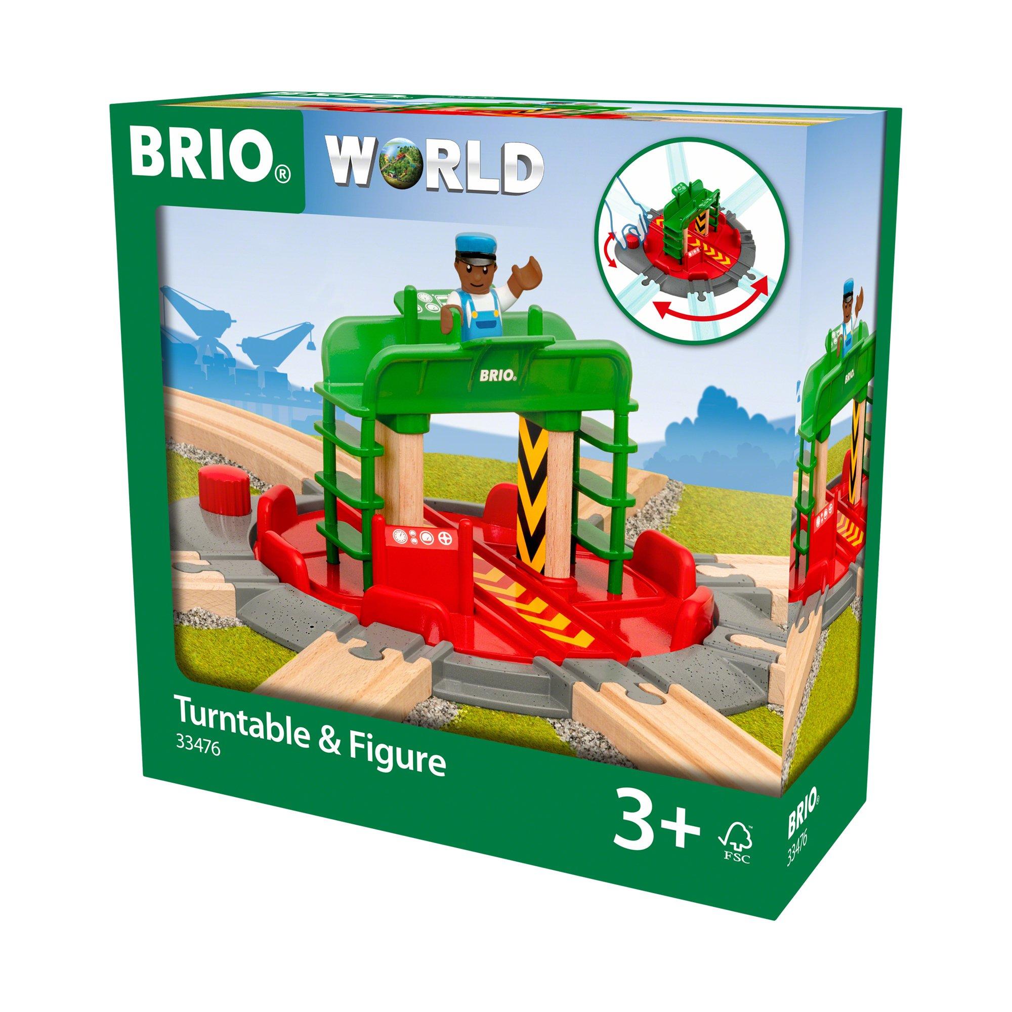 Avec ses sept différents points de liaison ferroviaire, la Plaque tournante et personnage 33476 devient une pièce centrale incontournable au sein du BRIO World. Il y a assez de place sur la plaque pour installer n'importe quelle locomotive du BRIO World - il suffit de tourner le bouton rouge pour voir la plaque centrale tourner et s'ajuster aux voies. Le mécanicien des trains est également inclus et commande, depuis les deux niveaux, la plaque tournante.