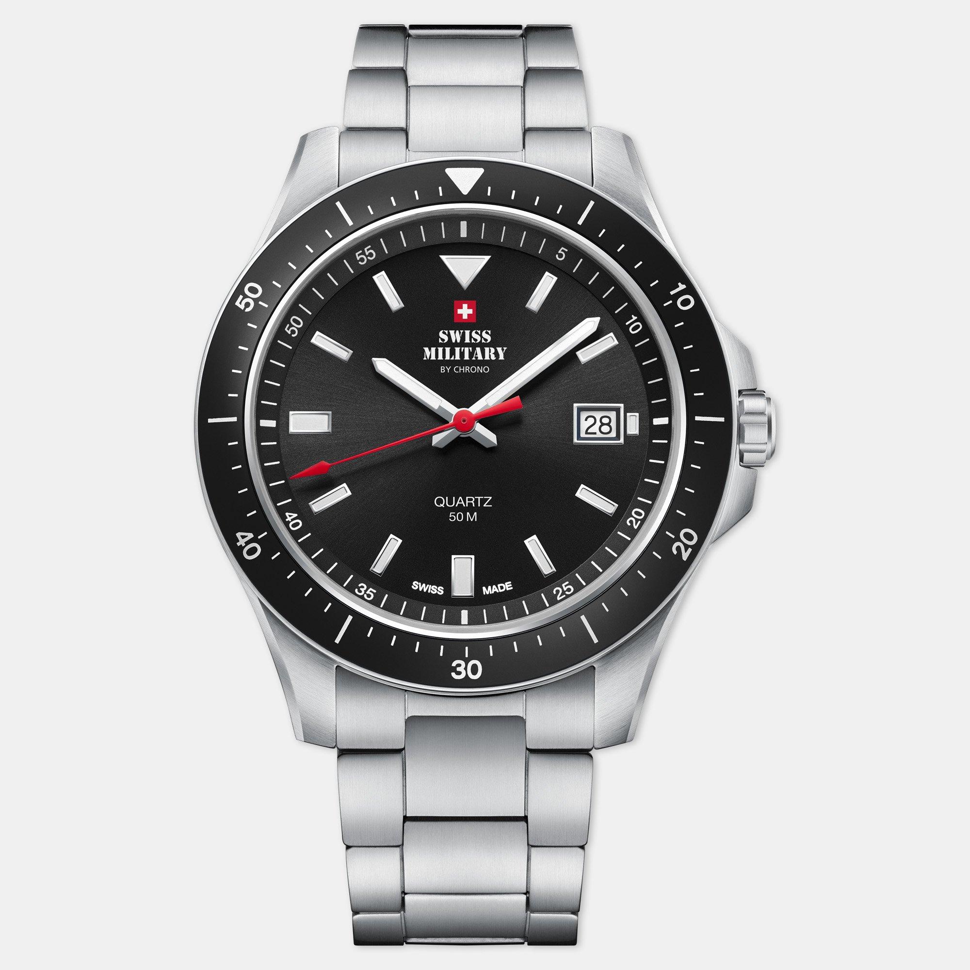 Le cadran raffiné de la montre de la marque Swiss Military est entouré d'un boîtier en acier inoxydable de grande qualité. Le bracelet s'intègre harmonieusement dans le design masculin. Un accessoire pratique, mais tendance.