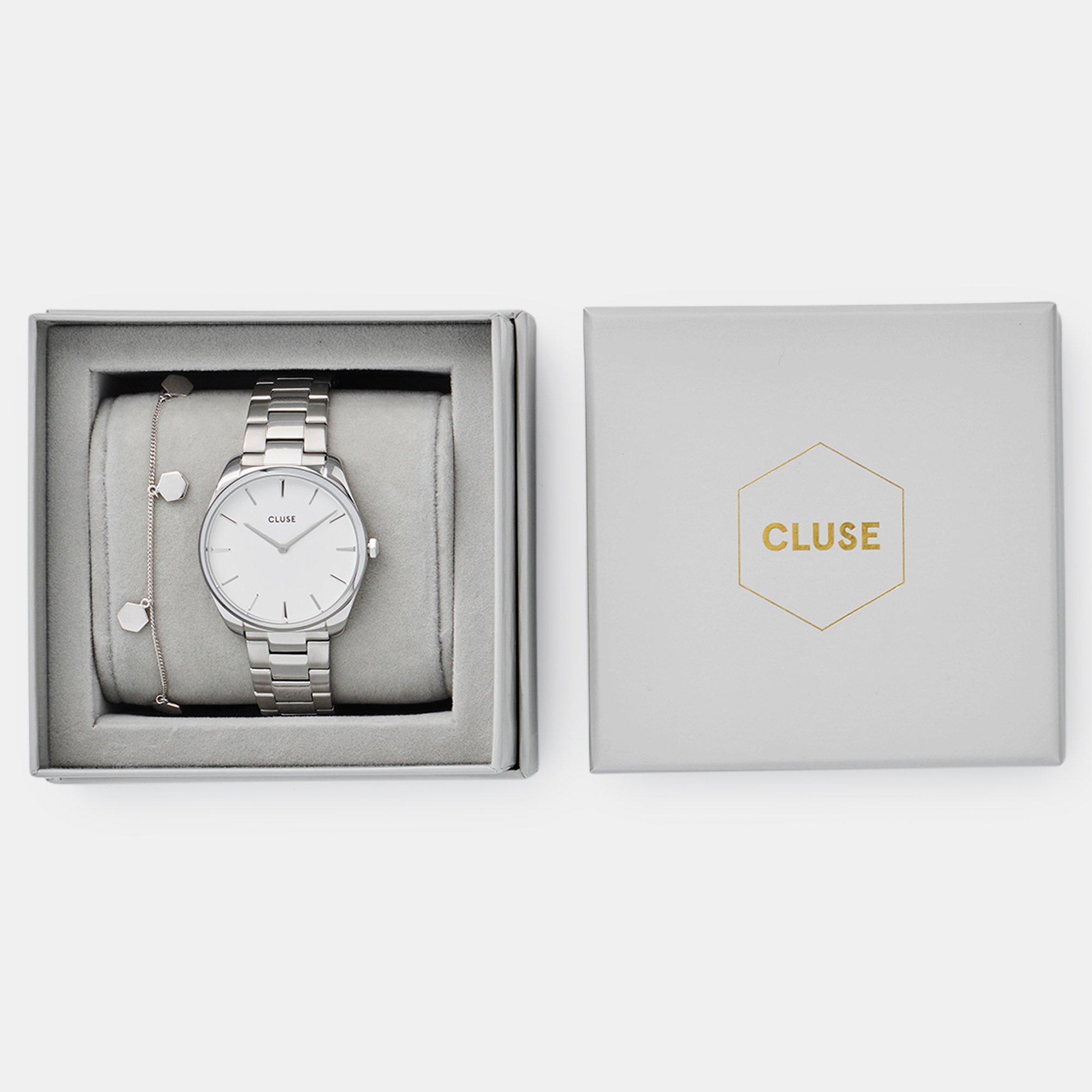 Cet ensemble de Cluse comprend une montre analogique classique et un bracelet assorti avec de simples pendentifs. Le cadeau parfait pour votre bien-aimée.