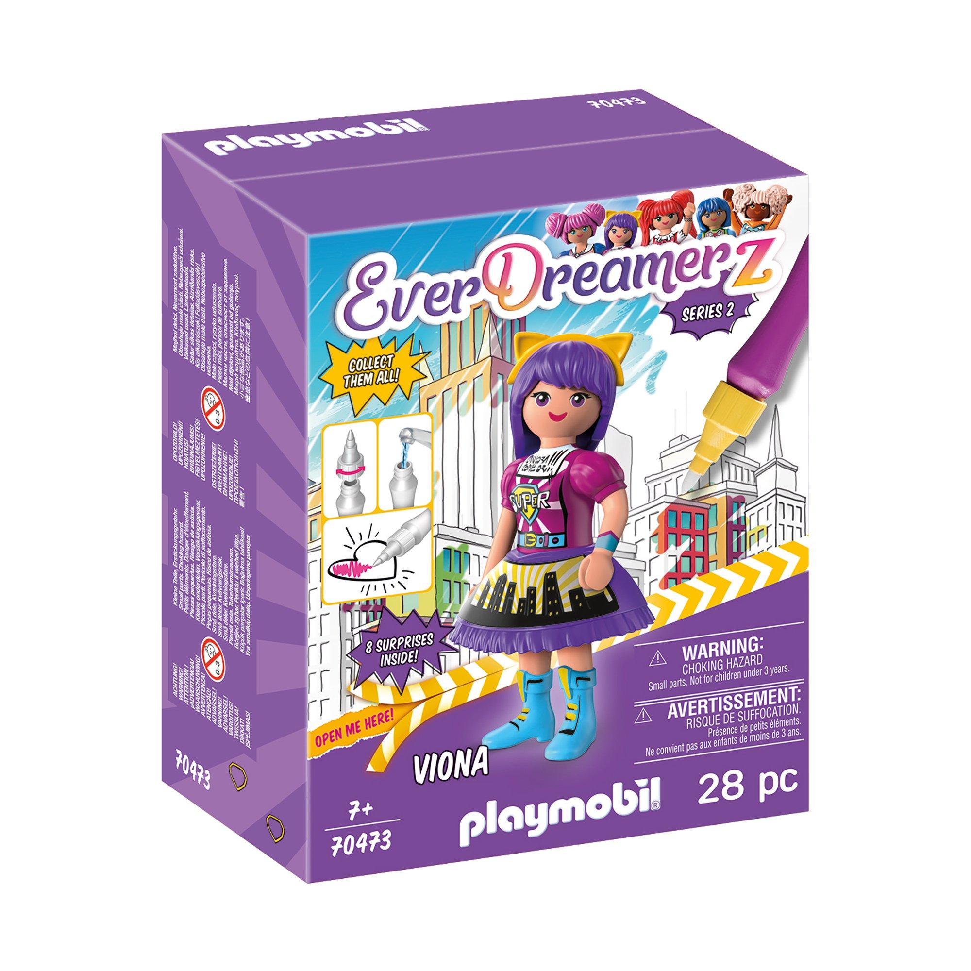 Viona est la mystérieuse rêveuse du groupe. Elle aime exprimer ses sentiments à travers la poésie et la peinture. Sa couleur préférée est le violet. Son talent artistique lui permet d'aider le groupe d'amies à se sortir de situations difficiles. Contient un bracelet, des perles, un pinceau, une carte à collectionner, des autocollants et de nombreux accessoires. Les autocollants peuvent être décorés avec le nouveau feutre à eau PLAYMOBIL.