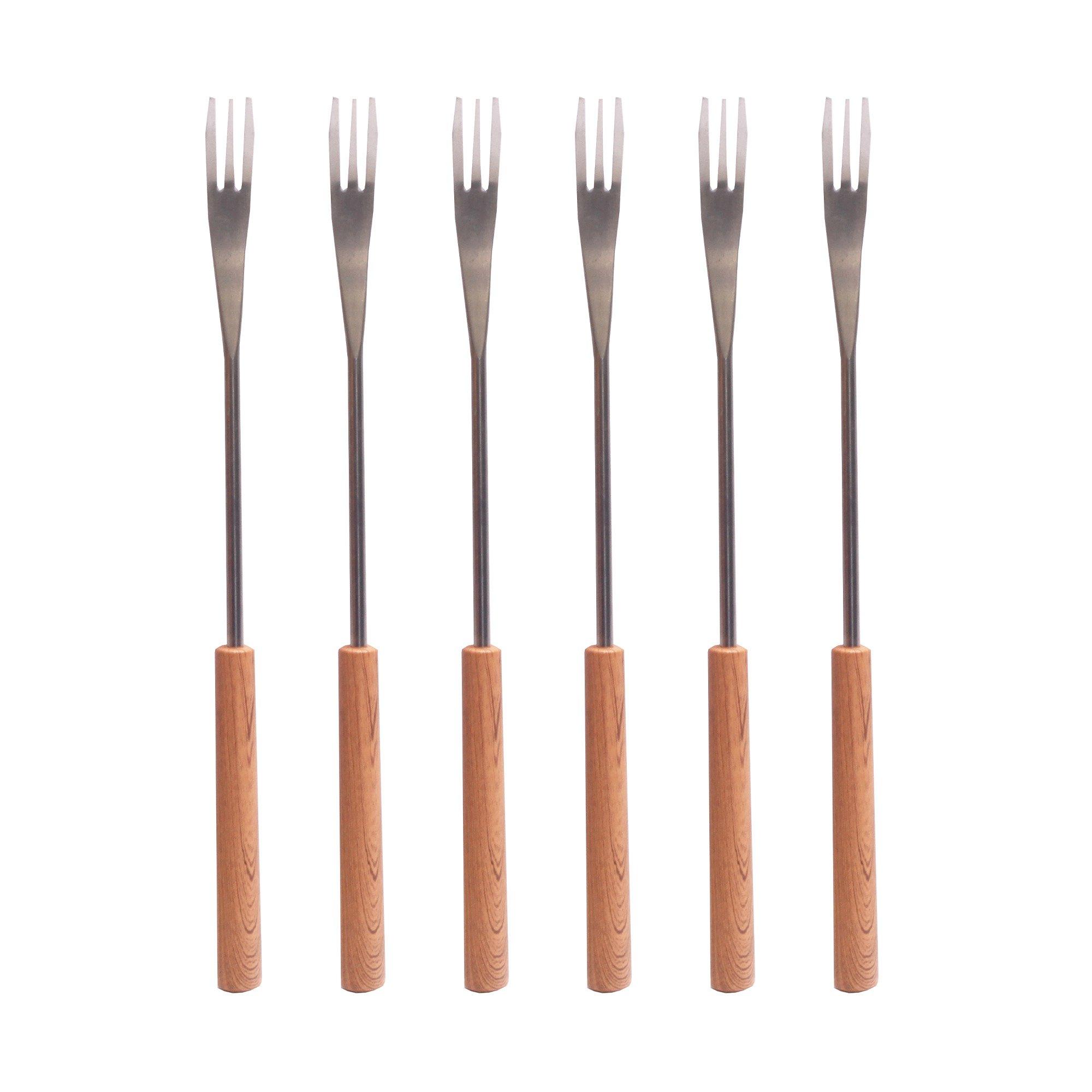 Fourchettes à fondue au fromage Nouvel en acier inoxydable et en bois d'olivier de Chine.