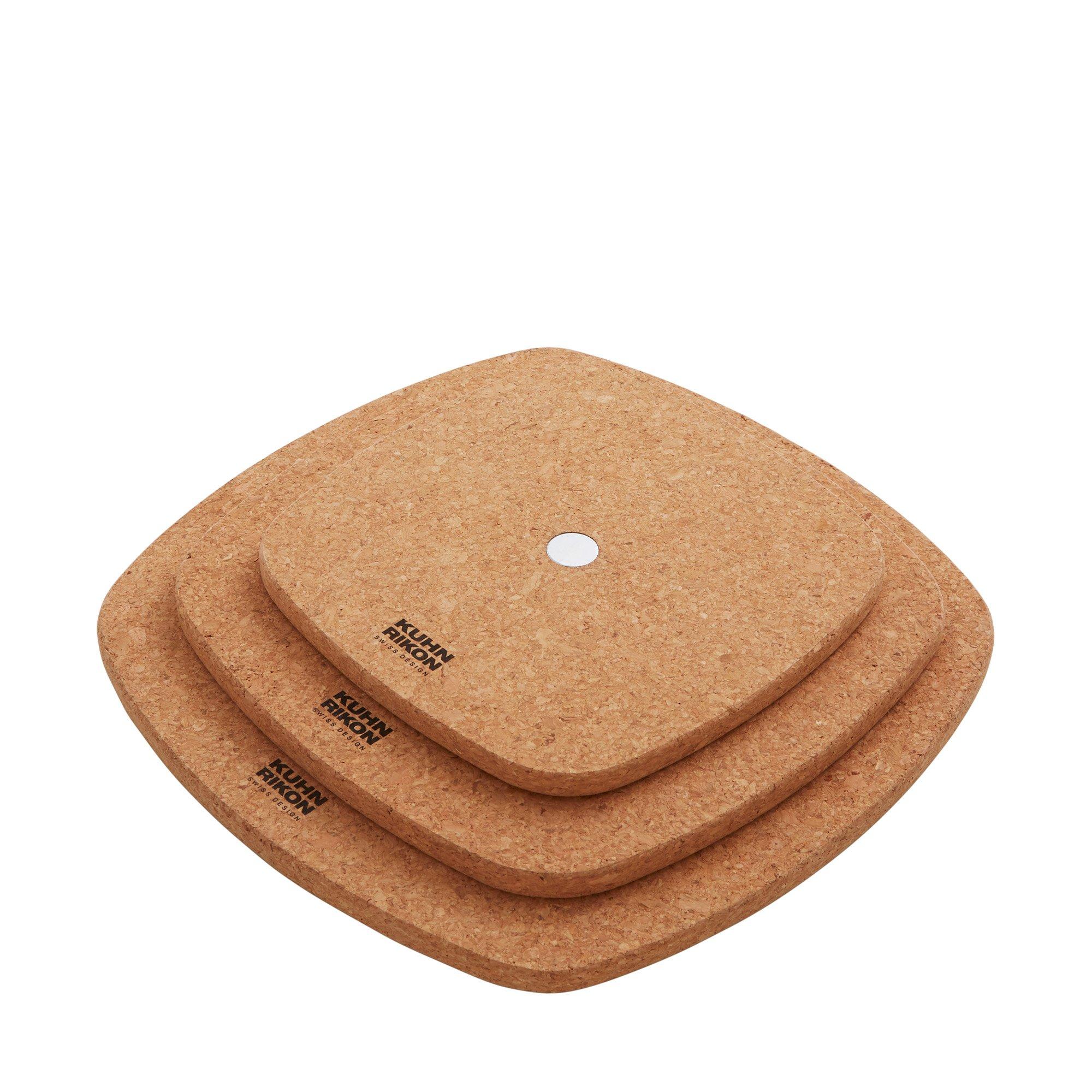Les sous-verres en liège durable de la ligne Smart & Compact de Kuhn Rikon sont magnétiques et protègent vos surfaces des fonds chauds et des rayures. Idéal pour servir sans effort des aliments à deux mains dans une poêle ou une casserole. L'aimant intégré maintient le fond du pot et du dessous de plat ensemble.