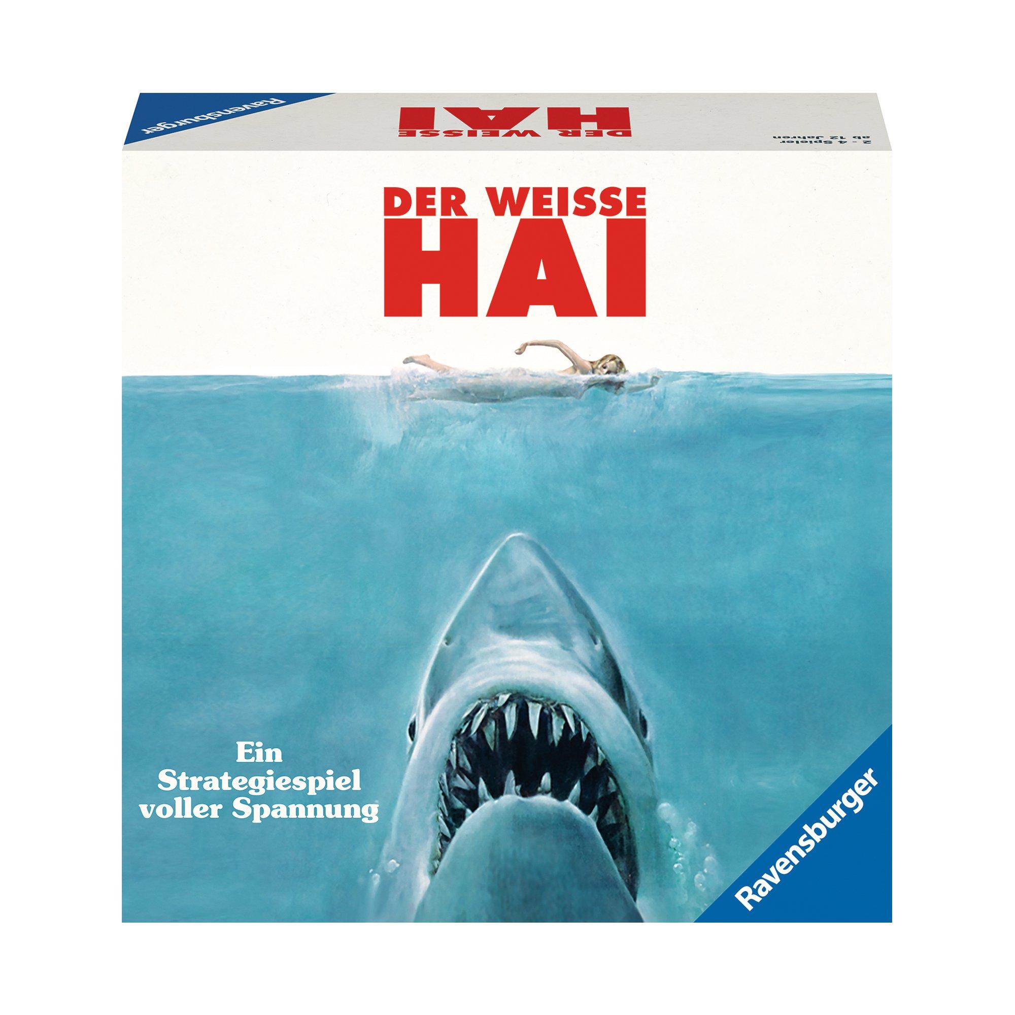 DER WEISSE HAI – das atemberaubende Strategiespiel zum Filmklassiker! Fressen oder gefressen werden? Ein Spieler ist der Hai, die anderen sind Teil der Crew. Die Jagd beginnt! Siegt der Hai über die Crew oder die Crew über den Hai? Die Partie ist in zwei packende Akte unterteilt: Insel und Boot. Für ein kürzeres Spiel sind diese auch eigenständig spielbar. Nun heißt es: Rette sich wer kann, der Hai ist los!