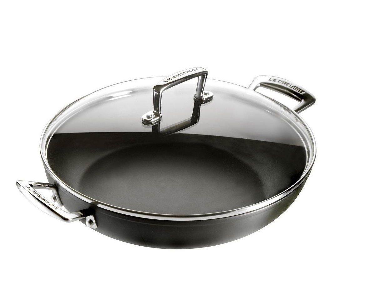 La poêle professionnelle en aluminium avec le meilleur revêtement antiadhésif de Le Creuset est robuste et résiste aux ustensiles en métal. Elle est idéale pour une cuisine saine - les aliments se détachent facilement, de sorte que vous ne devez ajouter que peu ou pas de matière grasse. La poêle professionnelle a un couvercle en verre qui emprisonne l'humidité et les arômes pour obtenir les meilleurs résultats.
