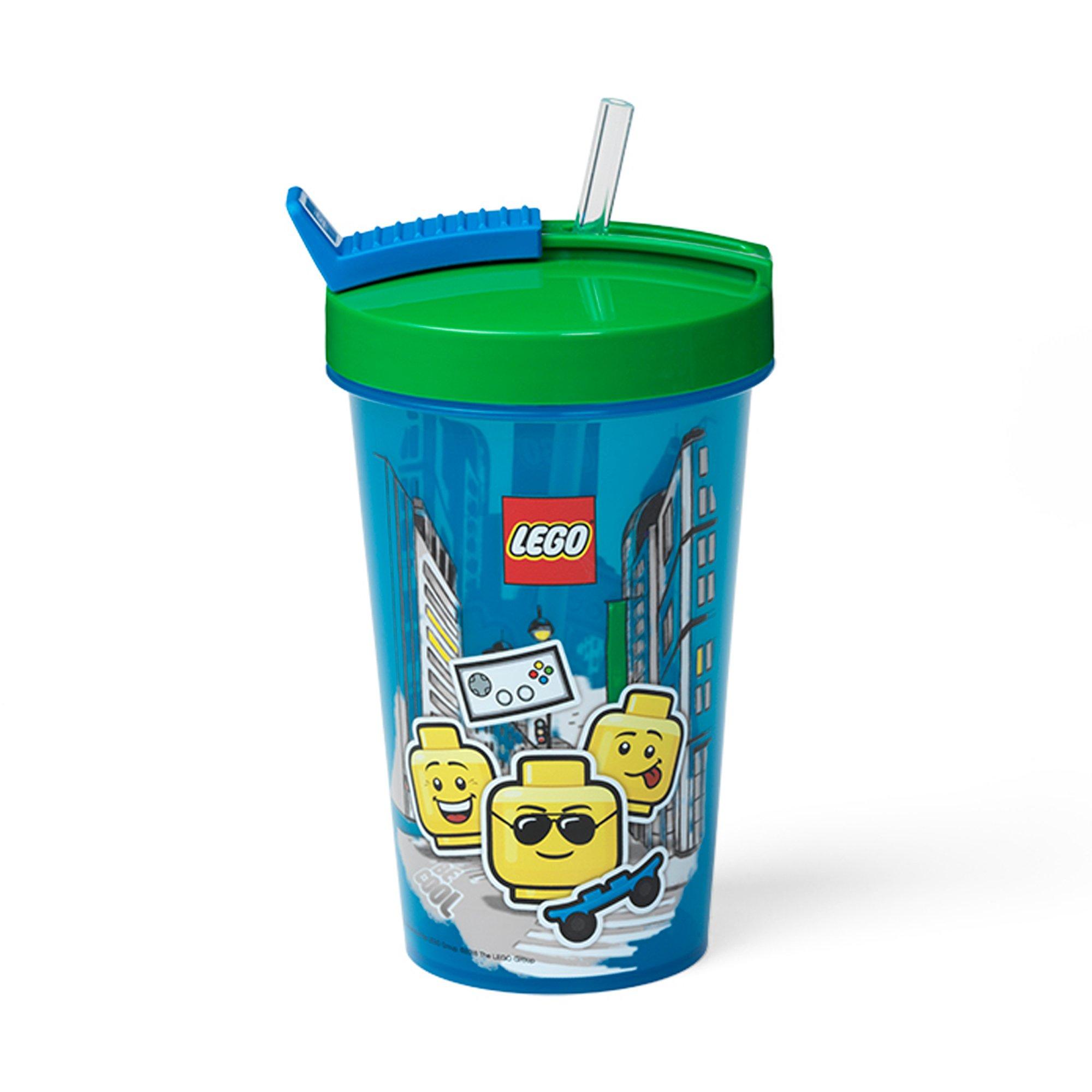 Ce gobelet possède un fond semi-transparent avec un dessin d’émoticône LEGO. La paille en silicone souple se cache facilement sous le rabat inspiré du séparateur de briques LEGO, ce qui évite les fuites pendant les déplacements. Le couvercle peut se dévisser afin de pouvoir remplir facilement le gobelet d’eau et de glaçons ou de tout ce qui doit rester hydraté pendant la journée.