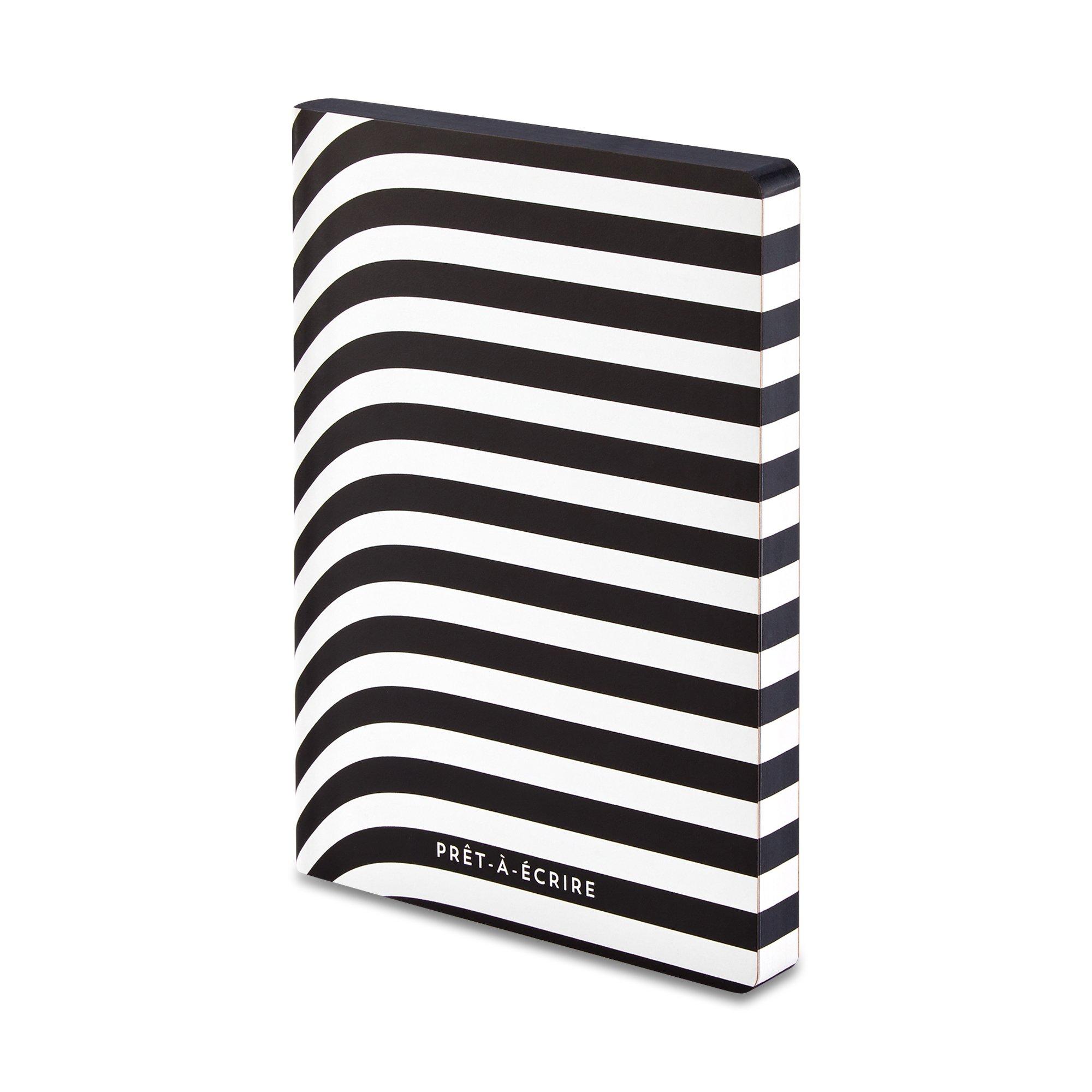 aussi à écrire. Les deux s'appliquent à ce carnet à rayures noires et blanches. Un accessoire qui veut être montré et qui est une maison élégante pour les pensées et les notes.