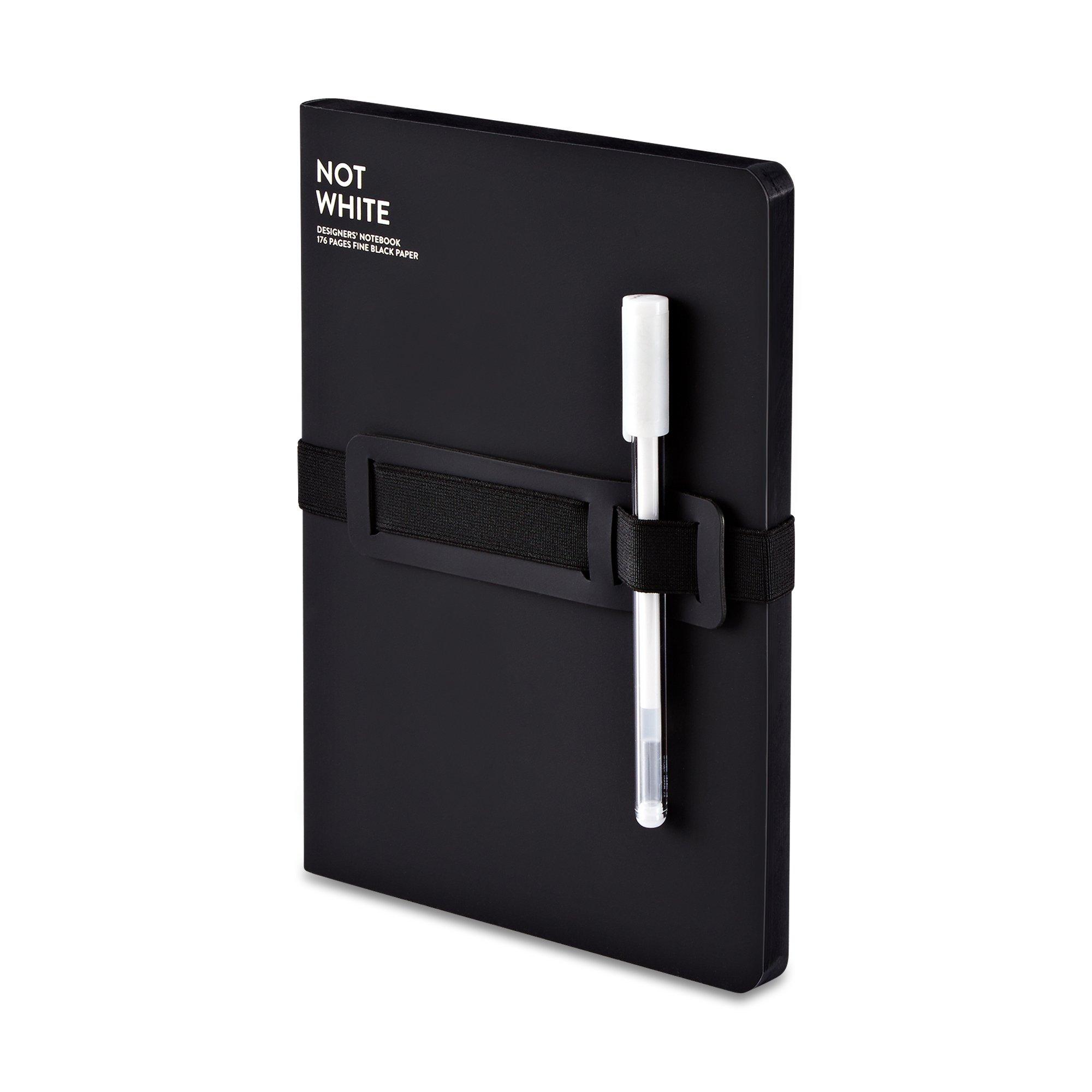 Vous cherchez un outil pour remettre en question vos propres habitudes d'écriture ? Pourquoi ne pas écrire avec un stylo blanc sur du papier noir ? Ce qui reste le même : une qualité supérieure. Et le plus : un sac à main anti-mouchard avec un stylo gel assorti. L'élastique est à la fois une fermeture et un porte-stylo et smartphone. L'ensemble parfait pour mettre les choses sens dessus dessous.