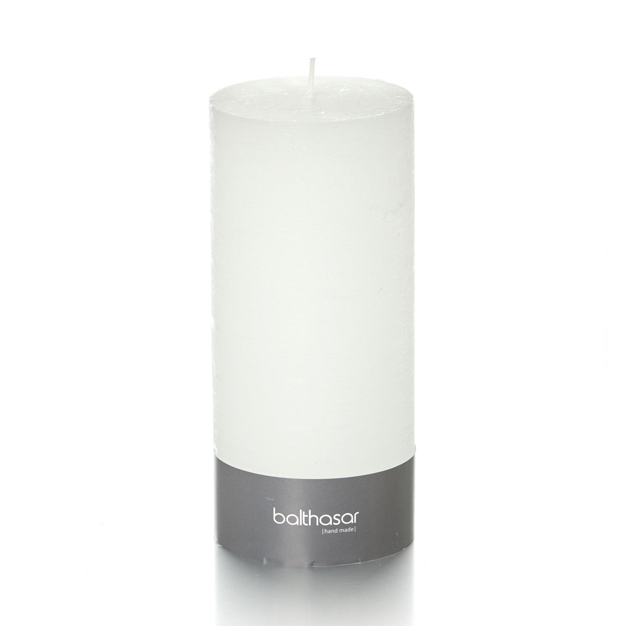 Notre recommandation pour les indécis : la bougie cylindrique Balthasar Rustico en blanc. En cire, pour l'intérieur, avec une durée de combustion de 120 heures et une surface rustique en givre.