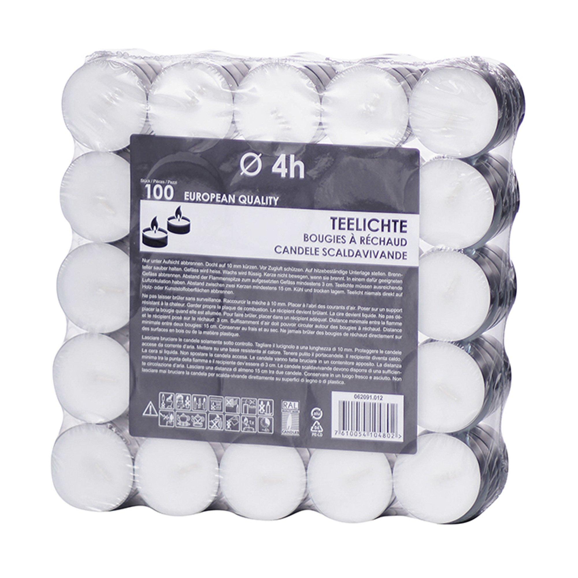 L'ensemble de bougies chauffe-plat Balthasar se compose de 100 bougies chauffe-plat blanches, chacune de 39 x 15 mm, avec une durée de combustion de 4 heures par bougie chauffe-plat.