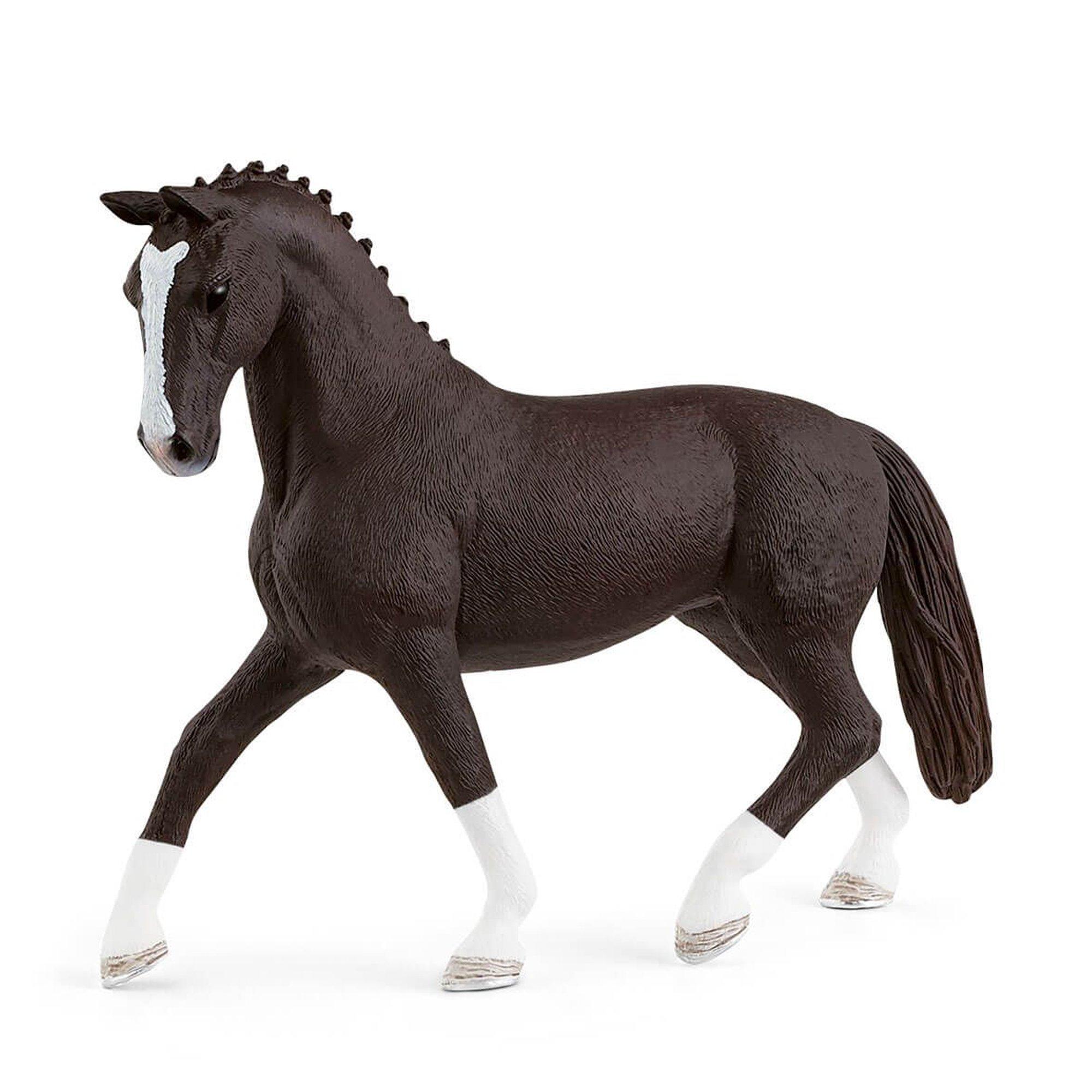 La crinière de la jument hanovrienne morelle du Horse Club Schleich® est tressée en petits pions dressés pour le concours. Avec sa pose dynamique, elle indique qu’elle déborde d’énergie et trépigne d’impatience à l’idée d’offrir la meilleure performance aux côtés de son cavalier. Le hanovrien fait partie des plus anciennes races à sang chaud et est considéré comme un excellent cheval de sports équestres. Il est facile à entraîner, vaillant, volontaire, doux et sympathique.