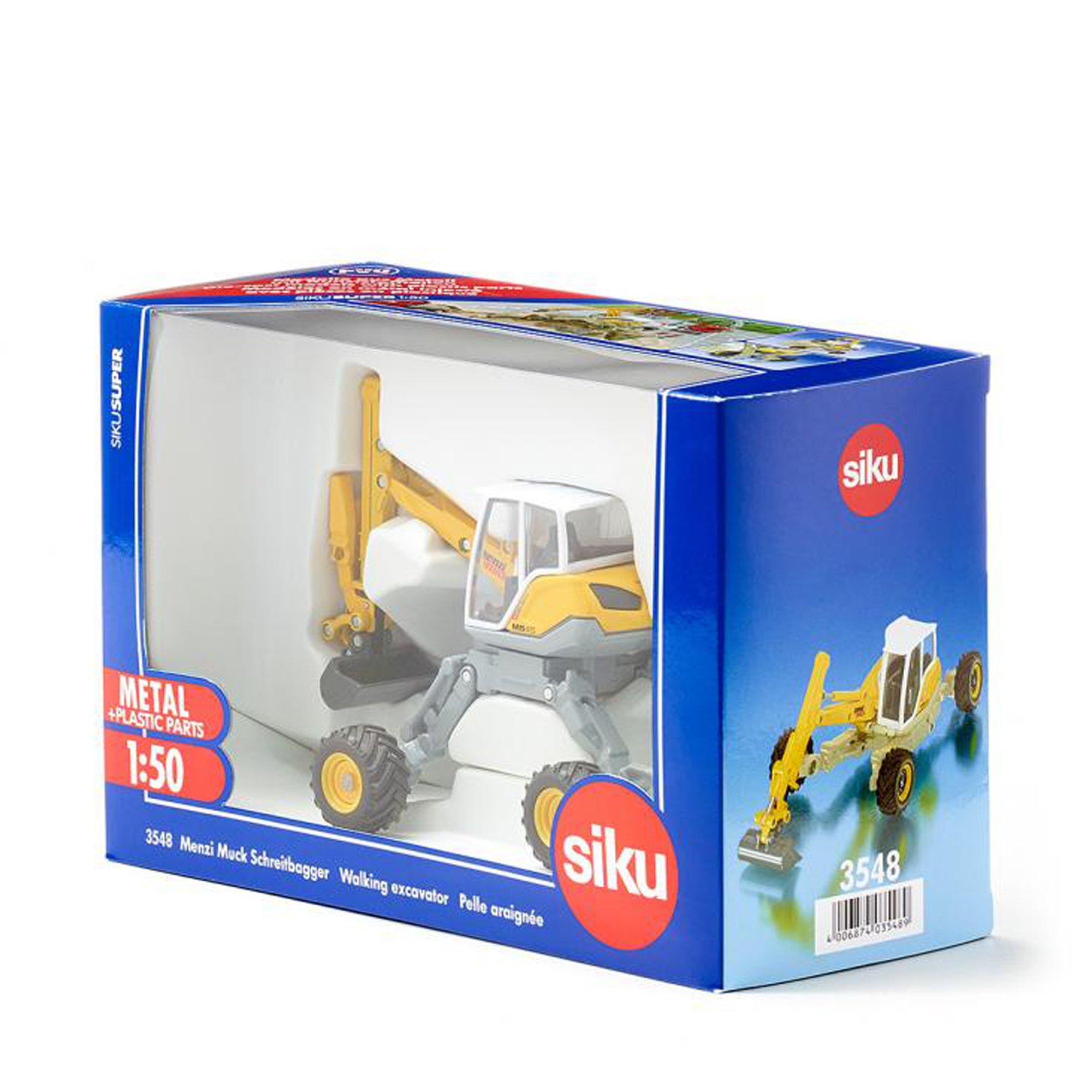 La pelle araignée de l‘entreprise Menzi Muck est une machine destinée à une utilisation sur les chantiers aux conditions extrêmes. Pour les travaux d‘excavation sur des pentes abruptes, des escarpements et des montagnes, ainsi que sur des surfaces peu praticables,le Menzi-Muck est l‘engin qu‘il faut. Le châssis réglable comme des tentacules de poulpe trouve sa stabilité, même sur des terrains extrêmes. Le bras d‘excavatrice mobile dans plusieurs directions est également télescopique et il est relié à la partie supérieure tournant à 360°. La miniature majoritairement construite en métal est peinte aux couleurs typiques de Menzi Muck.
