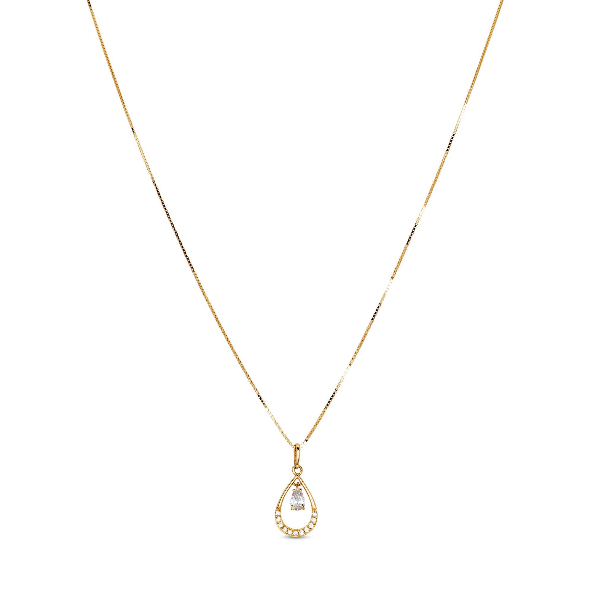 Cette élégante chaîne de L'Atelier Gold 18 Karat by Manor se distingue par son design filigrane. Elle se compose d'une délicate chaîne vénitienne en or jaune de haute qualité et d'un pendentif en forme de larme, qui est affiné avec des pierres de zircone scintillantes et une autre pierre de zircone dans un sertissage de griffes.