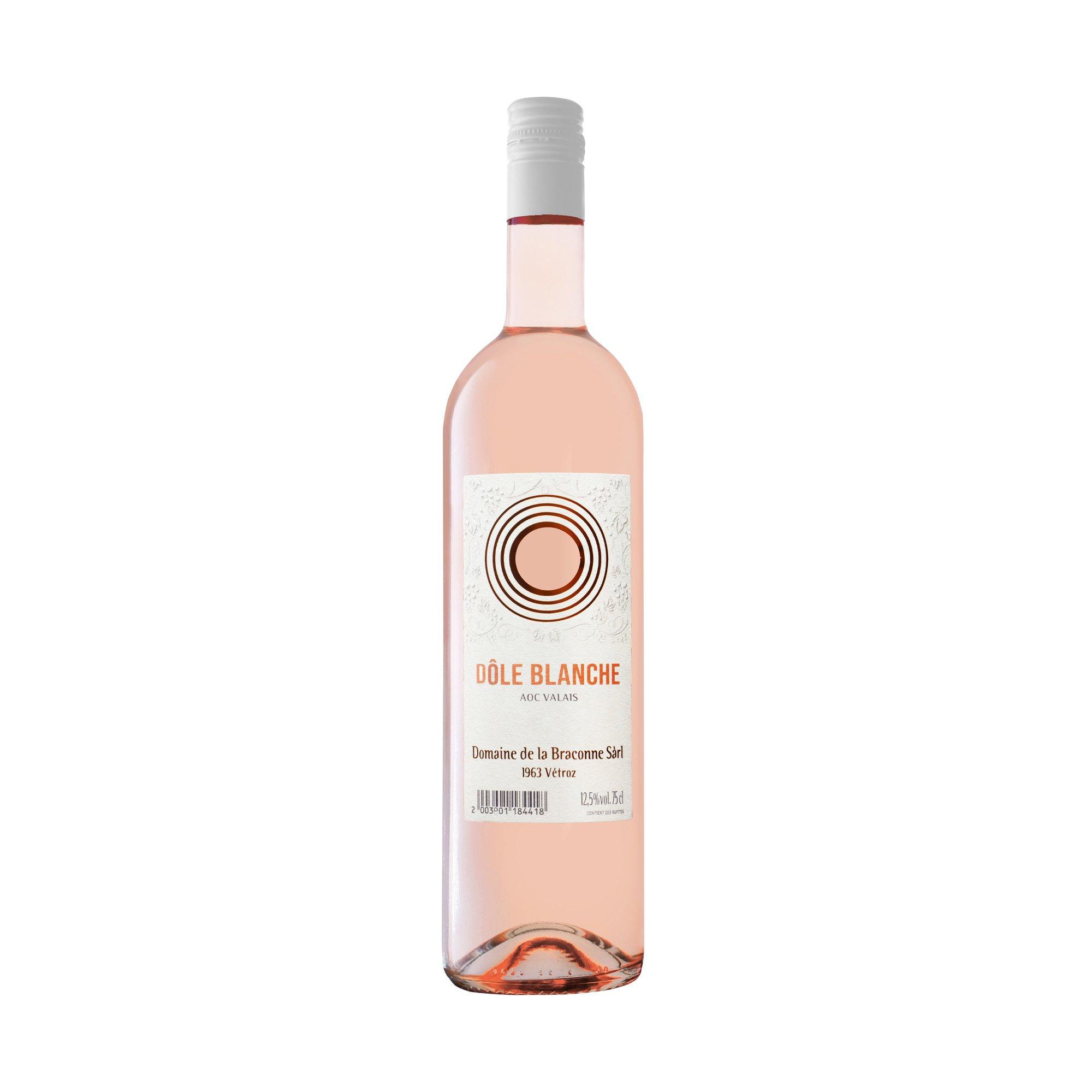 Le Domaine de la Braconne est situé à Vétroz, en Valais. Le rosé Dôle Blanche est élaboré à partir de pinot noir, qui pousse dans la plaine et les vignobles du bas. Dans le verre, il présente une belle couleur saumonée. Le bouquet est plein d'arômes de groseille et d'autres fruits rouges. En bouche, la Dôle Blanche se révèle être un vin vif qui accompagne parfaitement l'apéritif ou les poissons et les plats asiatiques.