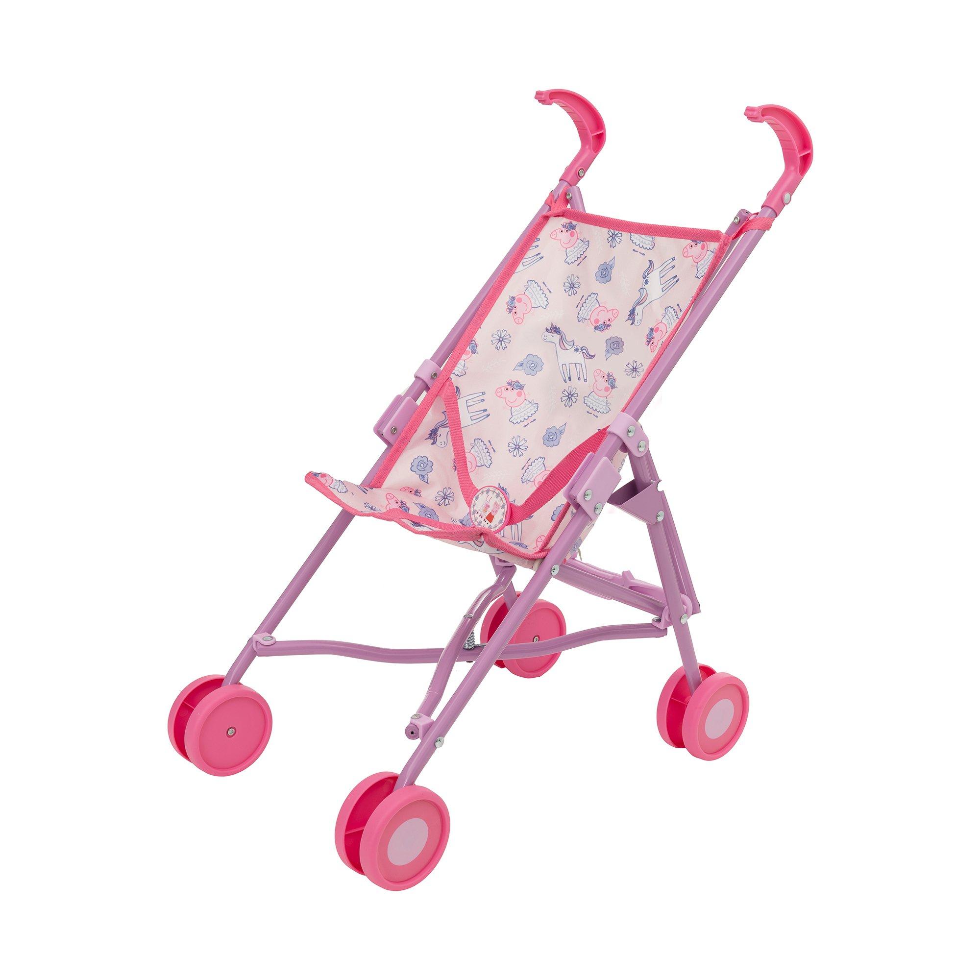 Cette poussette Peppa Pig est parfaite pour se promener avec sa poupée. Elle est dotée d'une poignée d'une hauteur de 53 cm et de doubles roues pour faciliter la conduite. La poussette peut se replier à l'aide d'un mécanisme parapluie pour atteindre une taille compacte qui permet un rangement facile. Cette poussette s'adapte parfaitement à votre poupée et convient aux poupées jusqu'à 43 cm. Cette charmante poussette Peppa Pig est un ajout parfait à votre maison et encouragera les jeux de rôle et l'imagination. Convient aux enfants de 3 ans et plus.