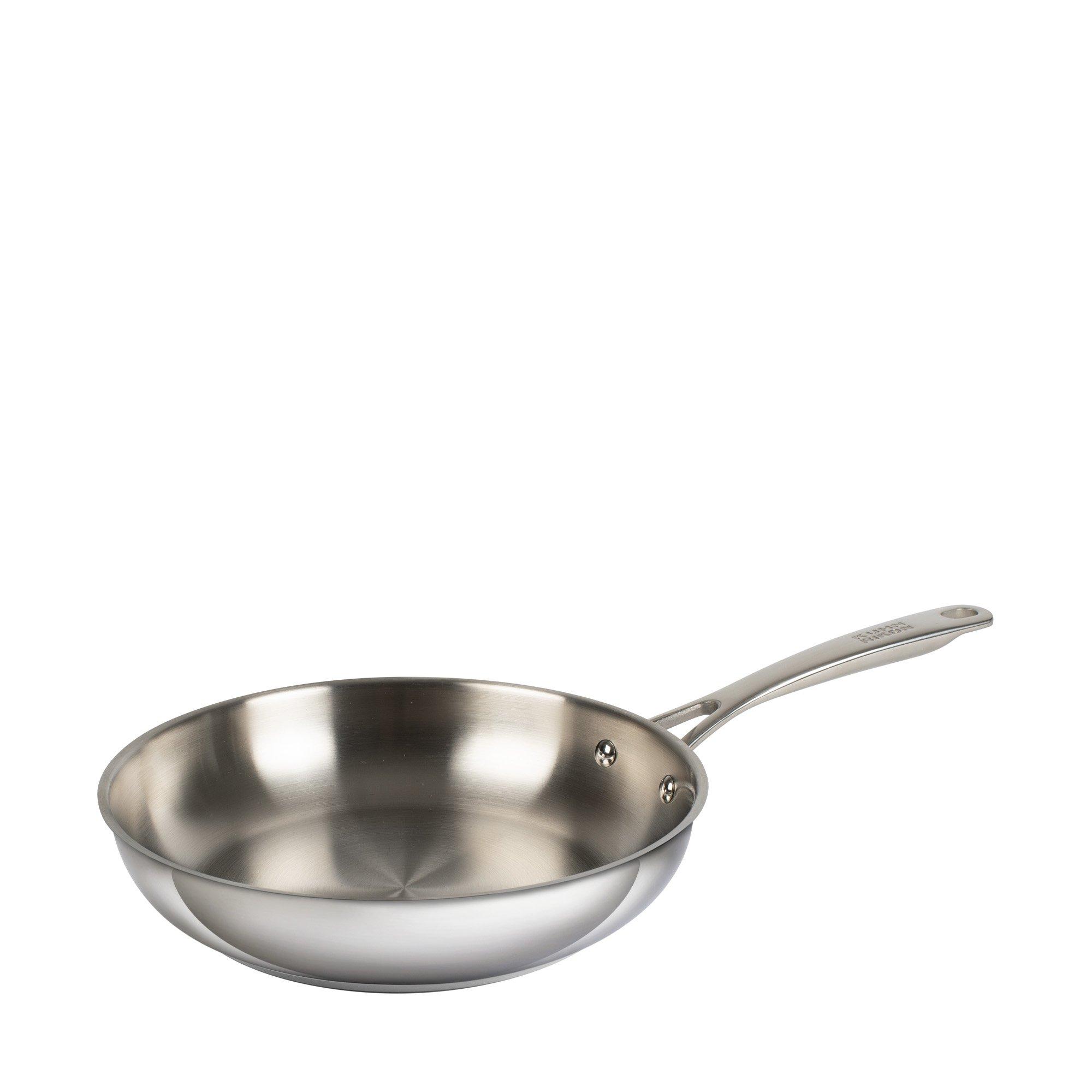 Poêle à frire polyvalente en acier inoxydable non revêtue de Kuhn Rikon. Particulièrement adaptée pour les viandes rôties. Elle résiste au four jusqu'à 240 °C et convient à tous les types de plaques de cuisson (y compris l'induction).